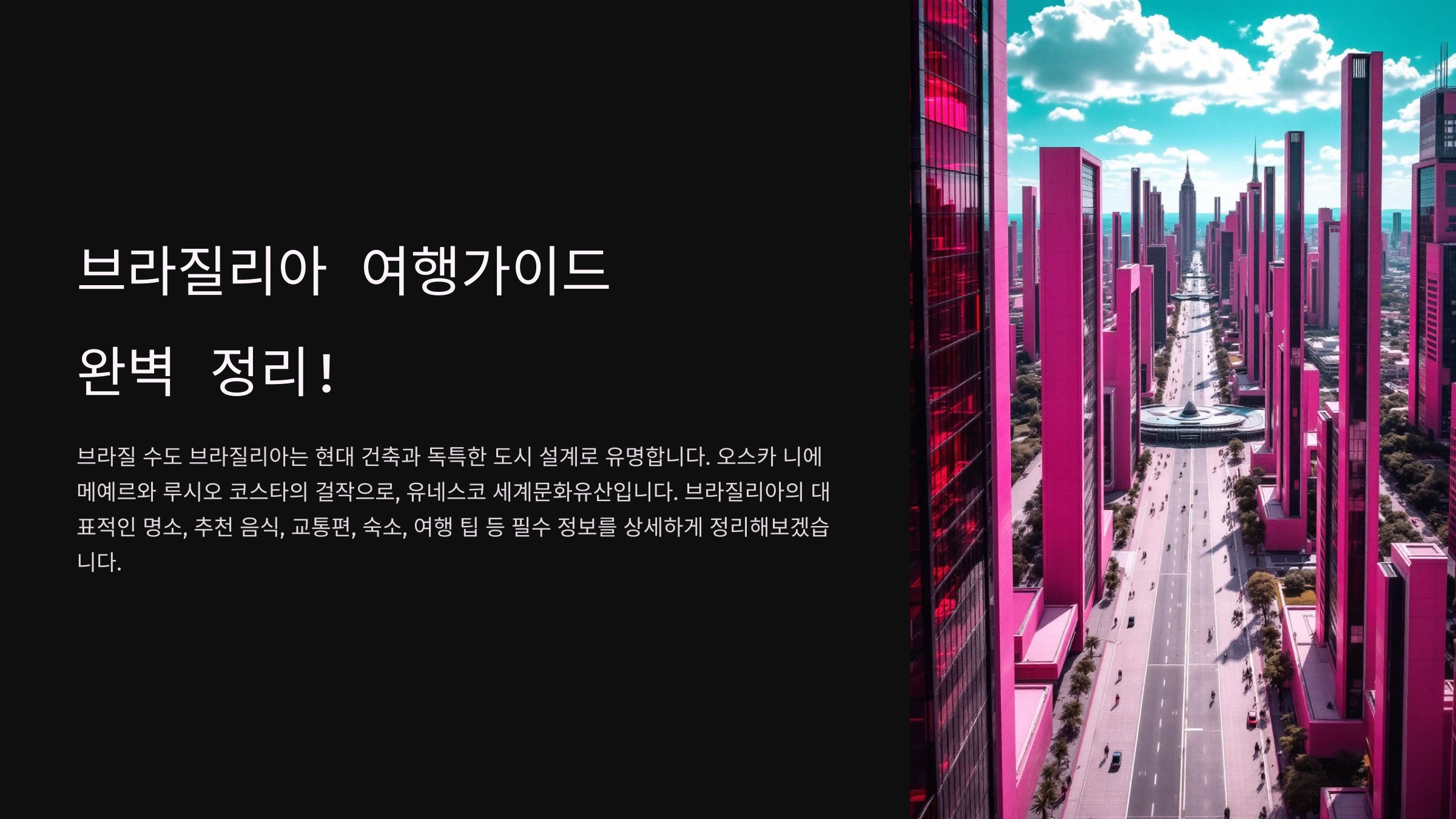 브라질리아는 단순한 행정 중심지가 아니라, 유네스코 세계문화유산으로 등재된 독창적인 디자인을 가진 도시입니다. 공항에서 도심까지의 접근성도 뛰어나고, 여행자들을 위한 다양한 볼거리와 즐길 거리가 가득합니다.