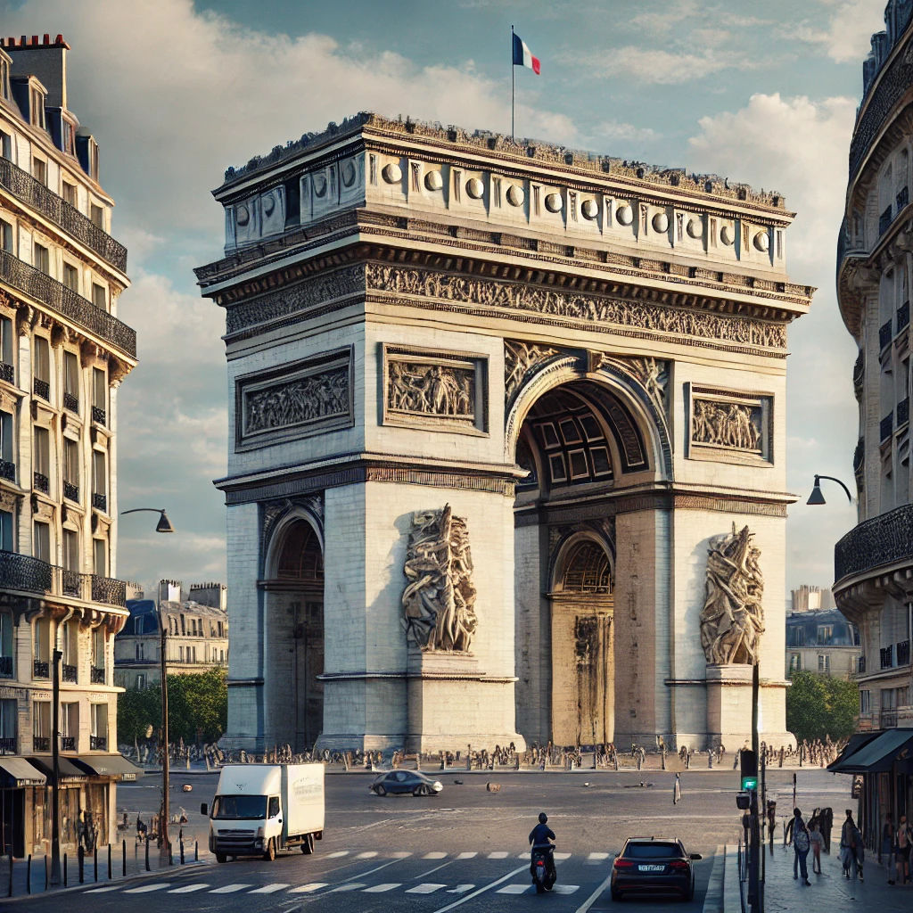 개선문은은 샹젤리제 거리 끝에 위치한 웅장한 기념물입니다. 나폴레옹이 자신의 승리를 기념하기 위해 세운 이 개선문은 역사적 의미가 깊고, 아름다운 파리 전경을 감상할 수 있는 명소로도 유명합니다.