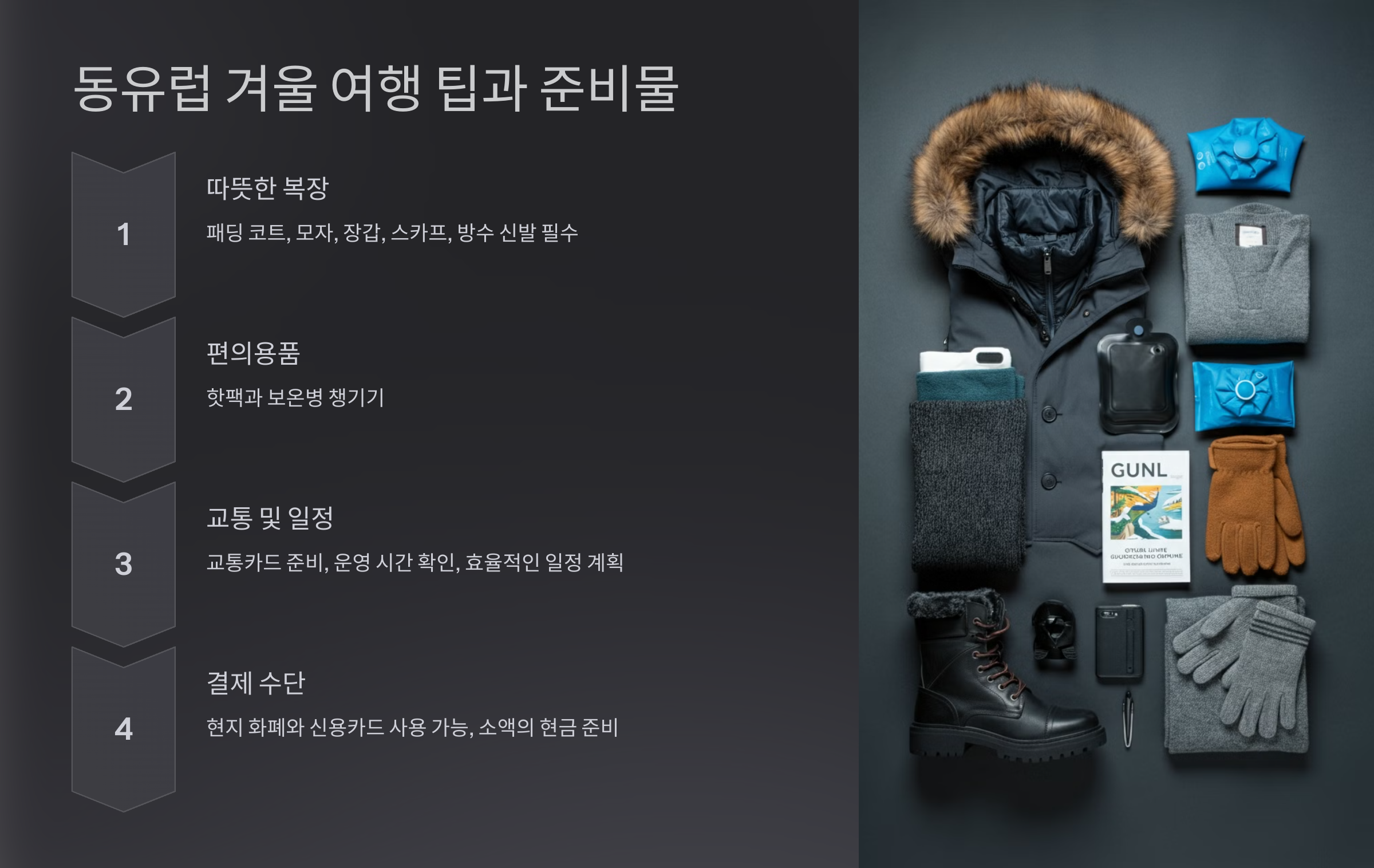 동유럽 겨울 여행 중 필수 준비물은 무엇인가요?