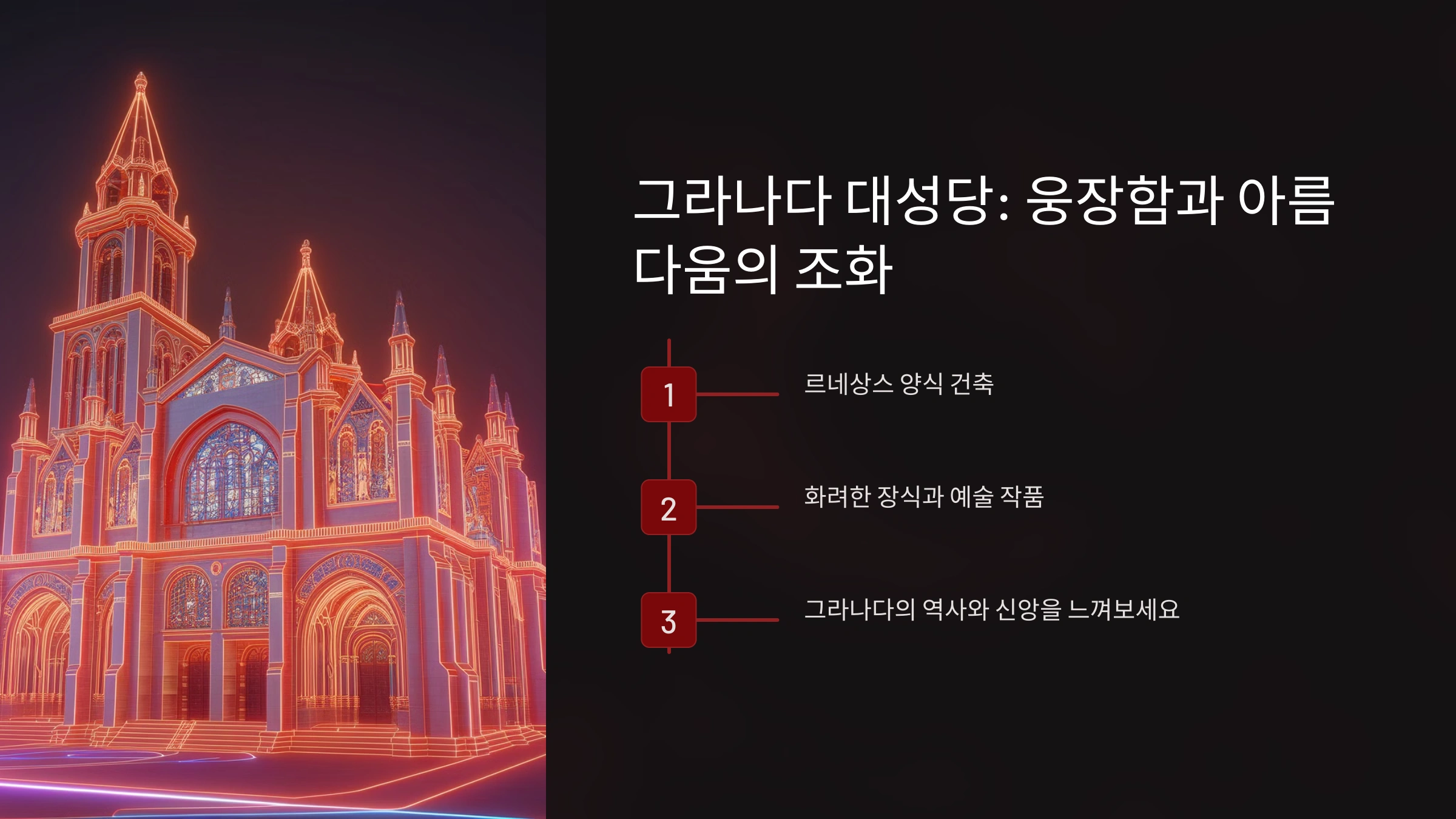 그라나다 대성당은 스페인 르네상스 건축의 대표적인 예로, 그 웅장한 외관과 섬세한 내부 장식이 인상적이에요. 대성당은 카톨릭 군주들이 무슬림 왕조를 몰아낸 후 지어진 건축물로, 역사적인 의미도 깊어요.