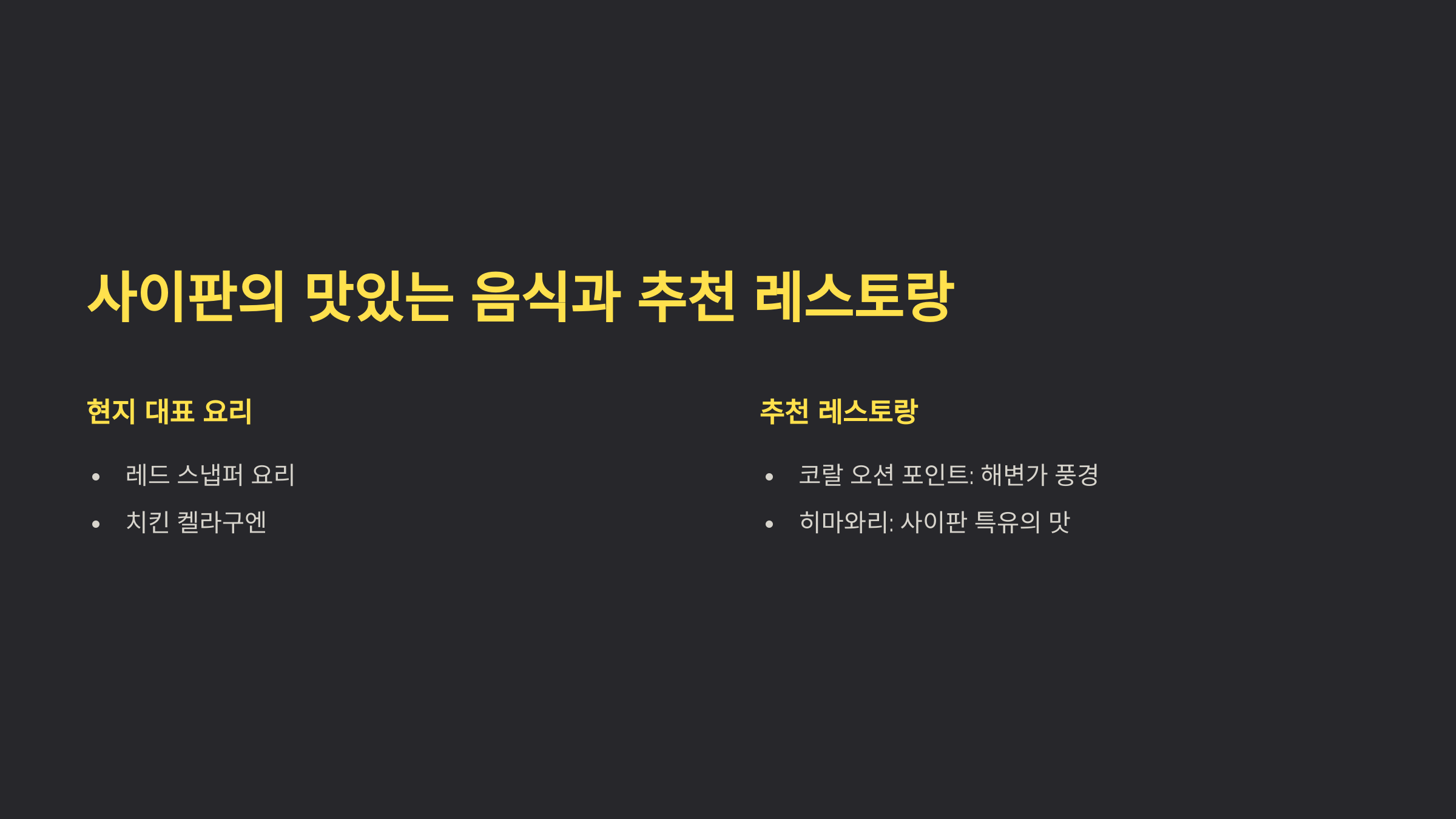 사이판의 음식과 레스토랑