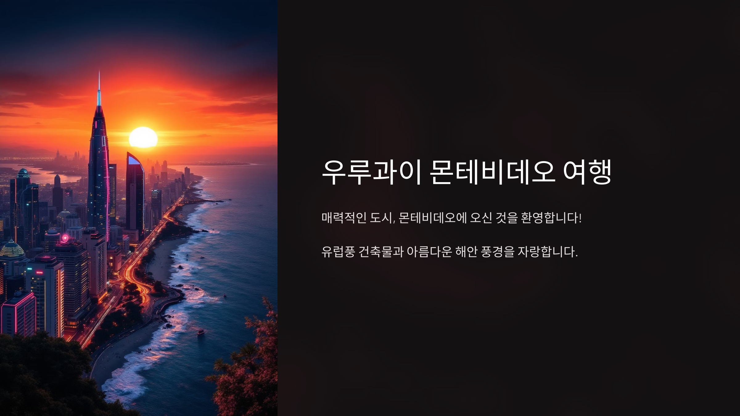 남미 우루과이의 수도 몬테비데오는 한국인들에게는 비교적 덜 알려진 여행지지만, 한 번 방문하면 빠져들 수밖에 없는 매력을 지닌 도시입니다. 아르헨티나의 부에노스아이레스와 가까운 위치에 있으며,