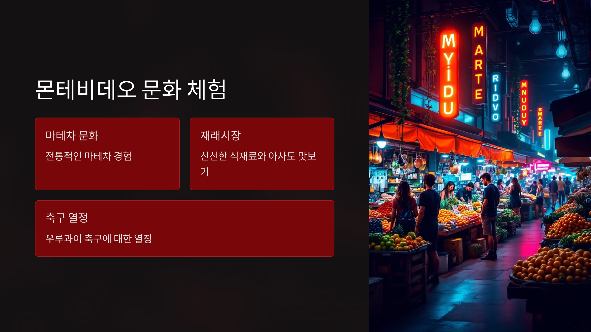 또한, 우루과이에서 가장 중요한 스포츠인 축구에 대한 열정을 직접 느껴볼 수도 있습니다. 이 모든 요소가 어우러져 몬테비데오는 단순한 관광지를 넘어 ‘머물고 싶은 도시’로 자리 잡고 있습니다.