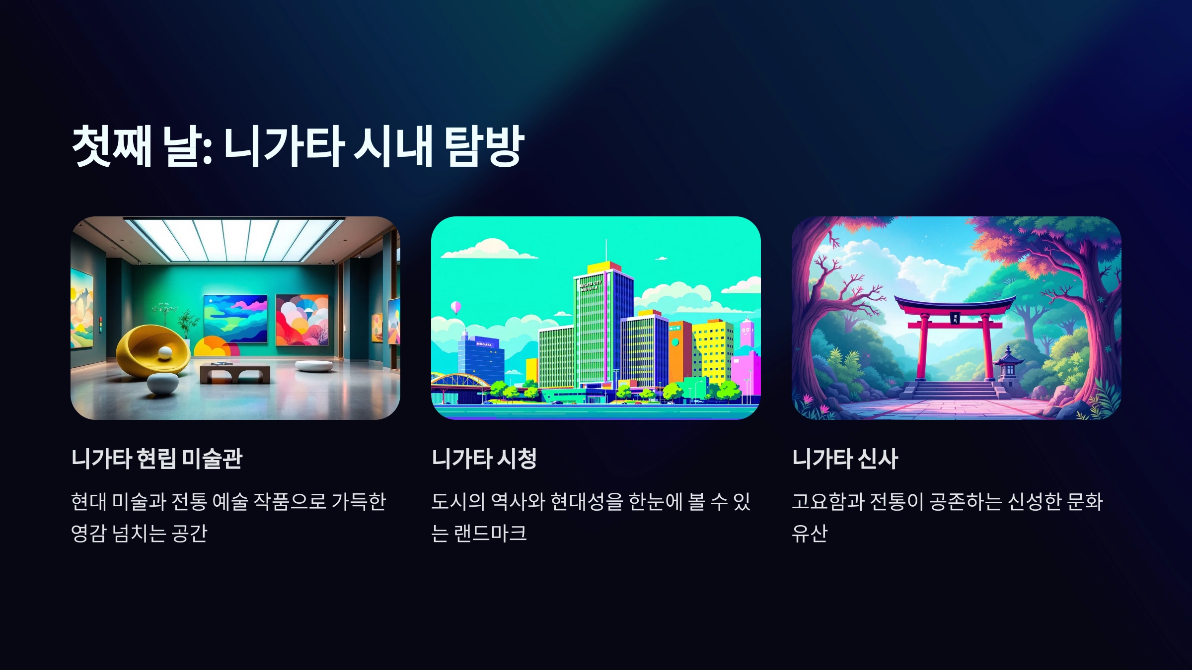 니가타는 일본 최대의 쌀 생산지로, 청주와 신선한 해산물도 유명해요. 아름다운 풍경과 맛있는 음식, 풍부한 역사까지 경험할 수 있어 여행의 만족도가 높답니다. 이번 일정은 초보 여행자도 쉽게 따라 할 수 있는 구성으로 준비했어요.