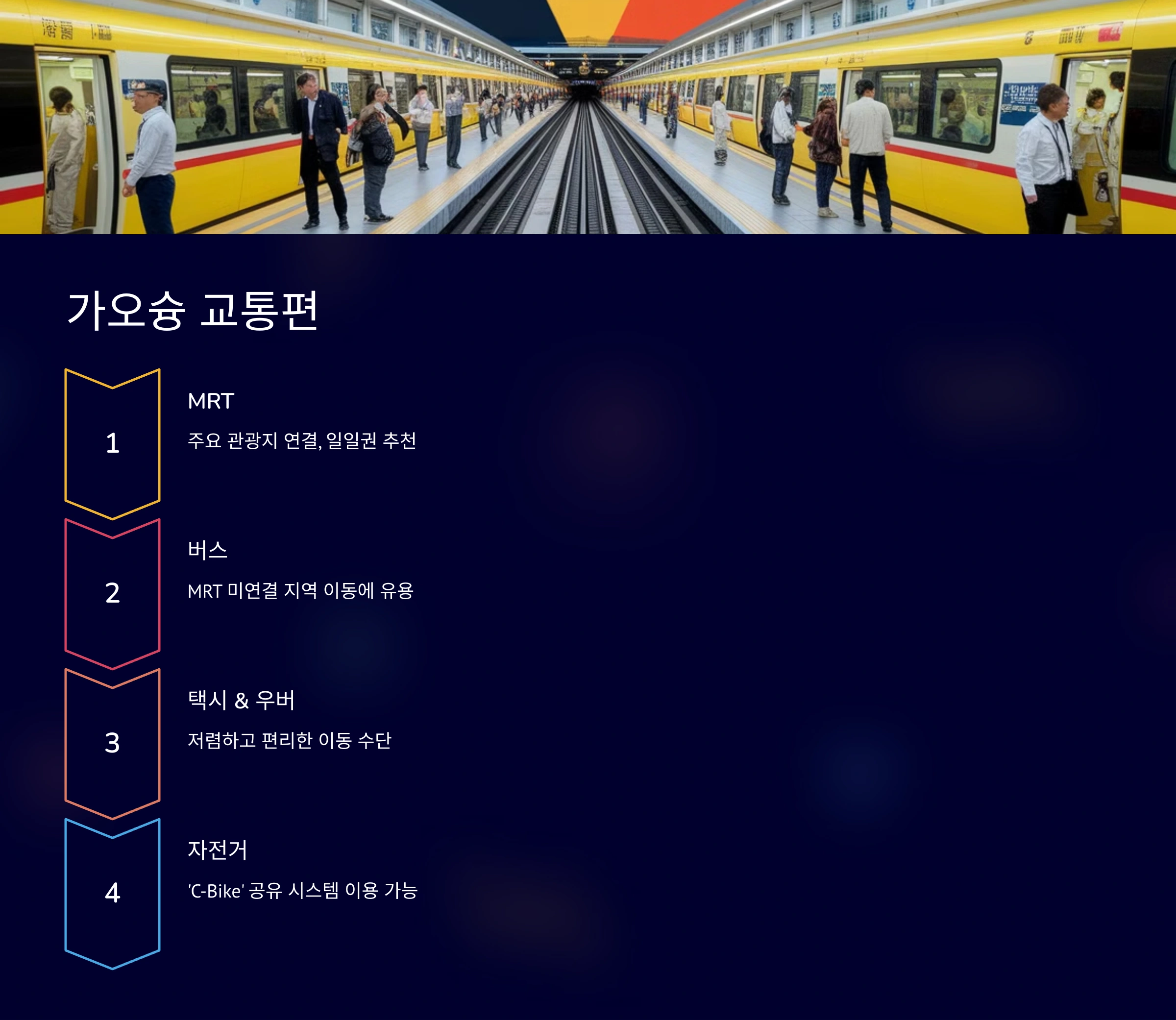 특히 가오슝은 대만 제2의 도시로, 날씨가 온화하고 물가가 비교적 저렴해 여행하기 좋은 곳입니다. MRT(지하철)와 버스 등 대중교통이 잘 발달되어 있으며, 야시장과 전통시장, 현대적인 쇼핑몰, 멋진 해안가까지 다양한 즐길 거리가 있습니다.