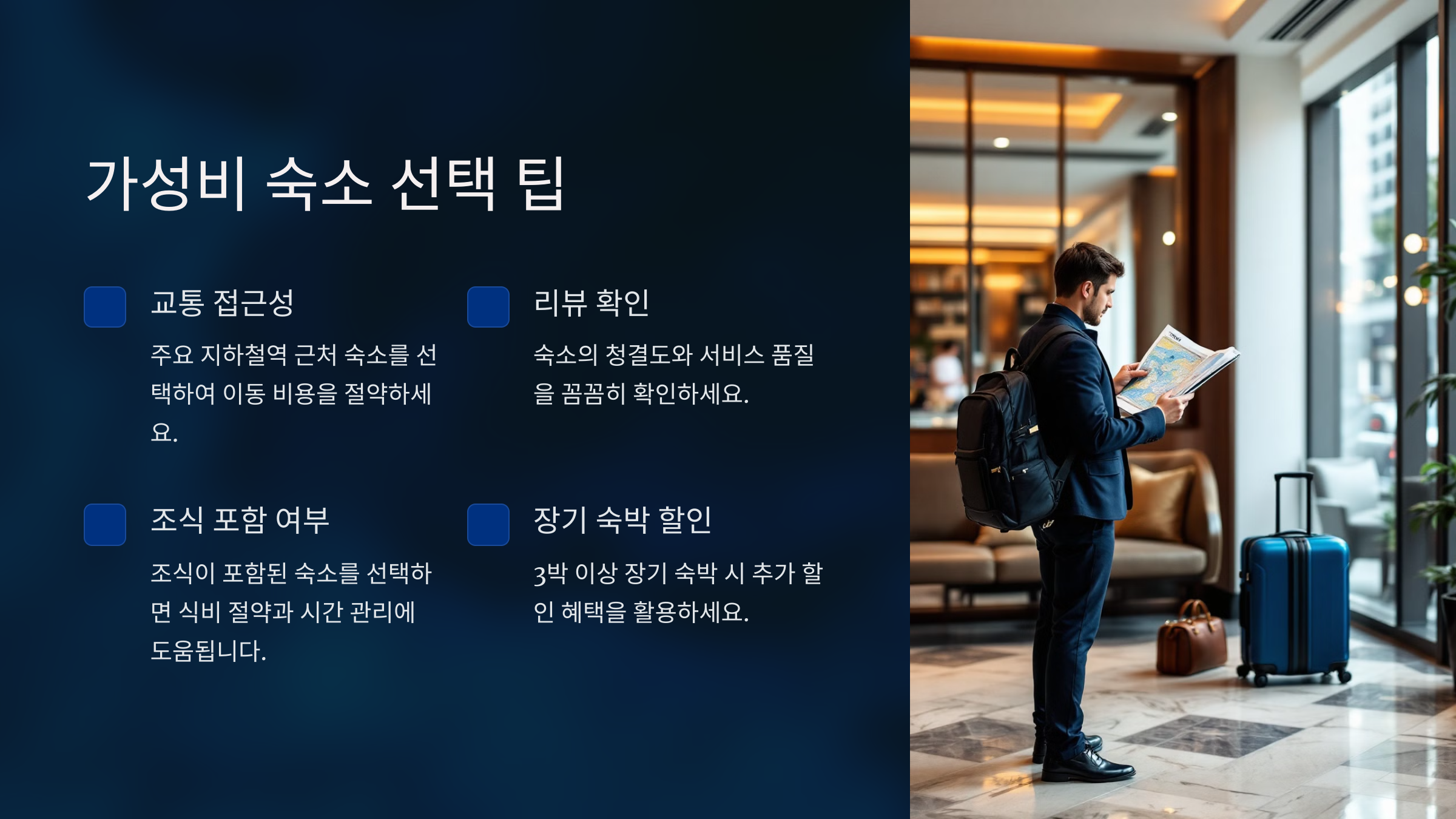 2. 숙소 리뷰 확인: 가격이 저렴하더라도 청결도나 서비스 품질이 낮으면 만족도가 떨어질 수 있습니다.