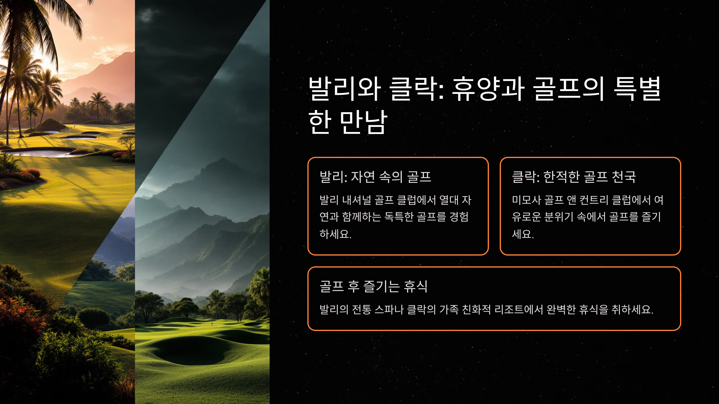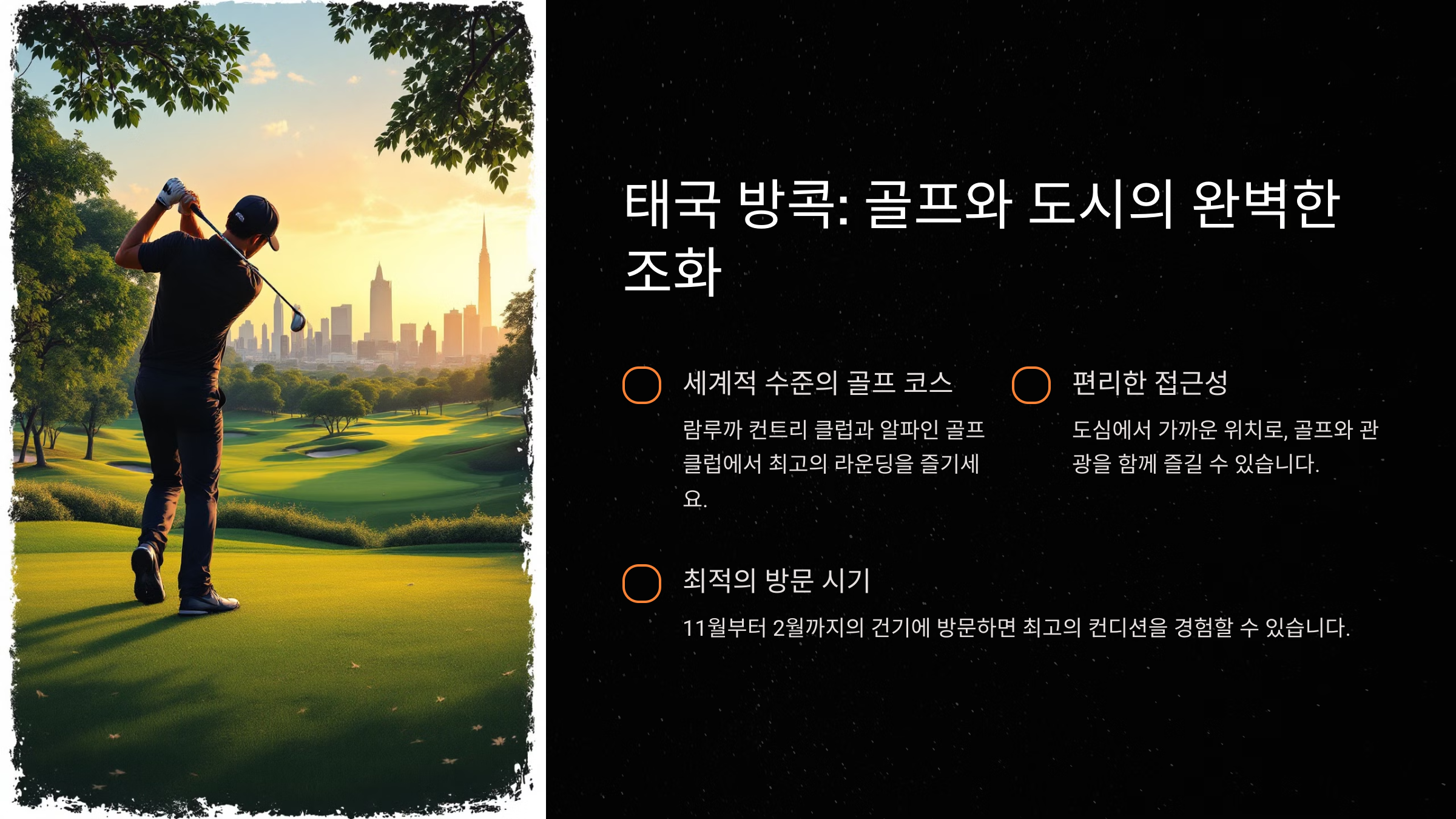 동남아는 골프 여행지로서 매력적인 조건을 모두 갖춘 지역입니다. 각 도시마다 고유의 매력과 경험을 제공하며, 골프와 함께 현지의 문화를 체험할 수 있는 기회도 풍부합니다.