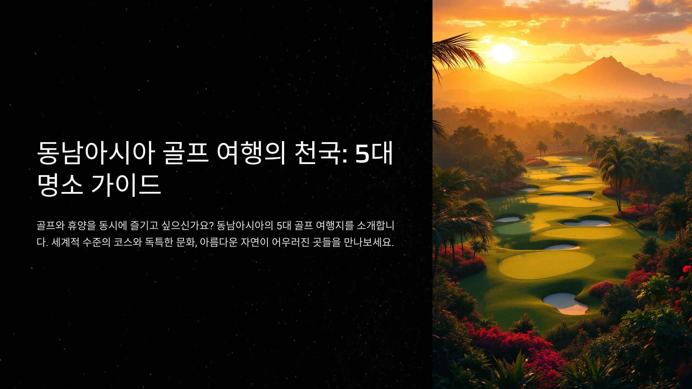 동남아시아는 골프 애호가들에게 천국과 같은 여행지로 손꼽힙니다. 뛰어난 자연경관, 훌륭한 골프장 시설, 합리적인 비용, 그리고 따뜻한 날씨 덕분에 골프를 즐기기 위한 최적의 환경을 제공합니다.