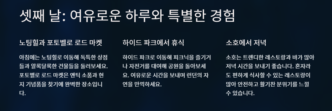 하지만 익숙하지 않은 도시에서의 혼자 여행은 다소 두려움을 동반할 수도 있습니다. 이에 따라 안전하면서도 흥미진진한 런던 여행 일정을 추천드리겠습니다