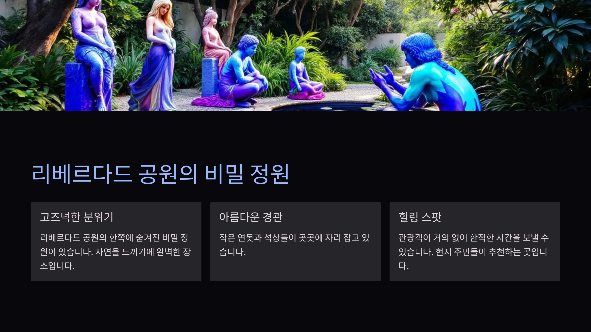 일반적으로 리스본의 공원들은 피크닉과 산책을 위해 많이 방문되지만, 리베르다드 공원의 한쪽에는 잘 알려지지 않은 비밀 정원이 있습니다. 이곳은 고즈넉한 분위기 속에서 자연을 느끼기에 완벽한 장소입니다. 작은 연못과 석상들이 곳곳에 자리 잡고 있으며, 벤치에 앉아 독서를 하거나 사색하기에 좋습니다. 관광객이 거의 없어 한적한 시간을 보낼 수 있는 이곳은 현지 주민들이 추천하는 힐링 스팟입니다.