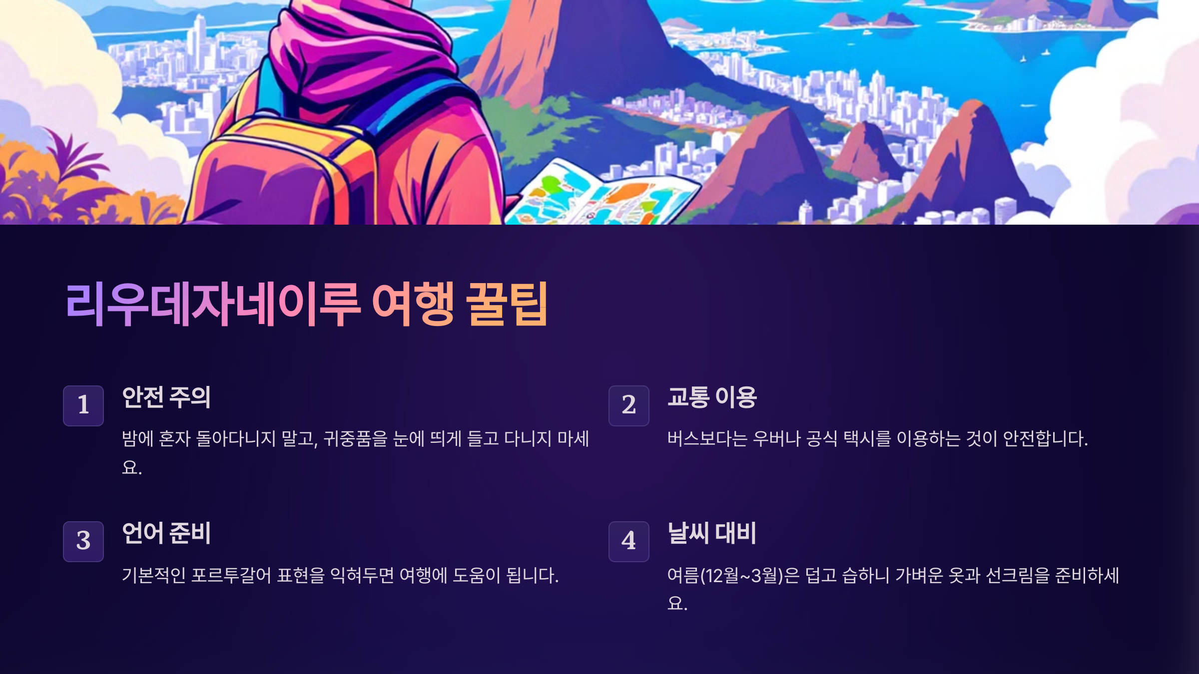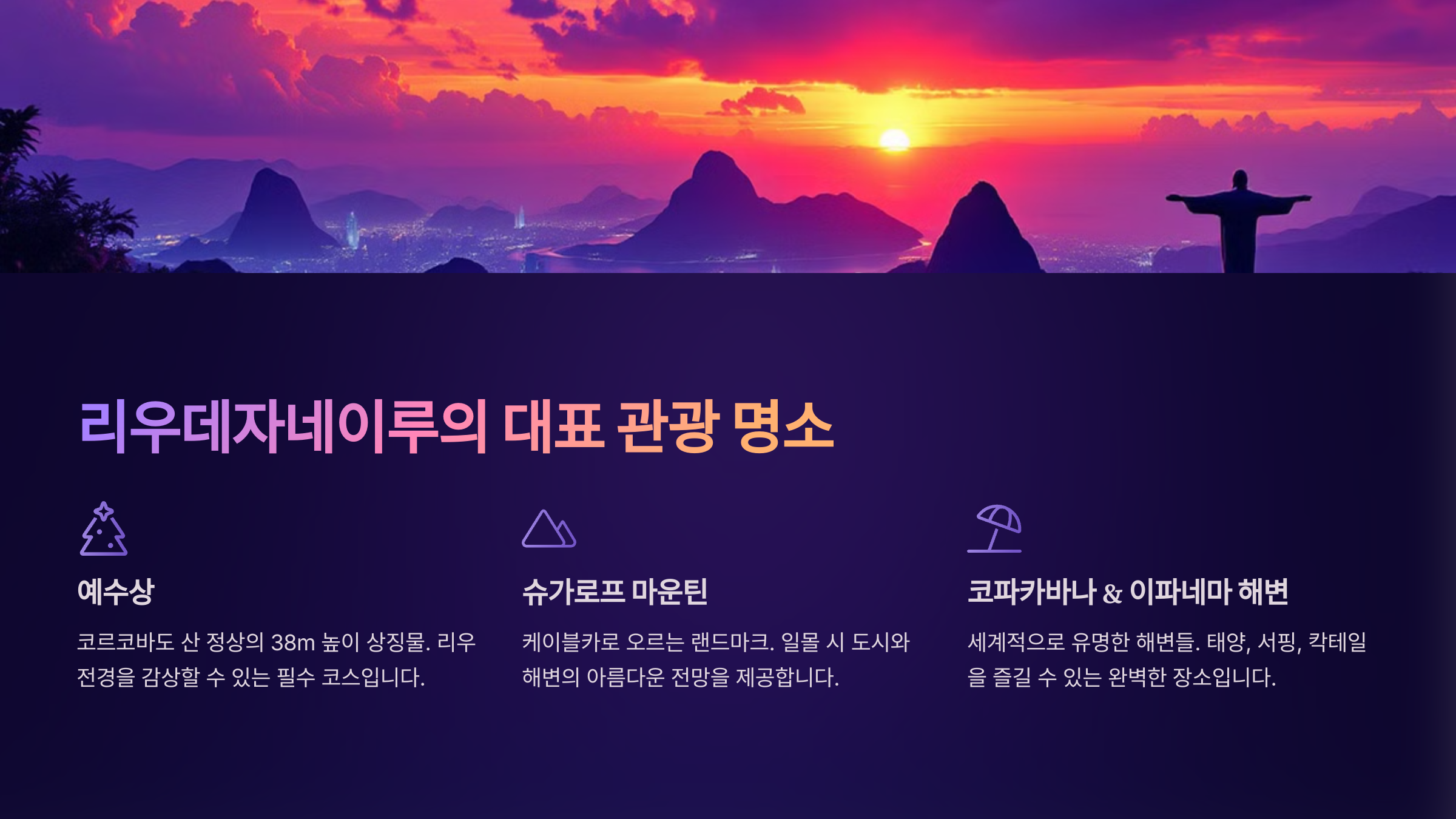 오늘은 리우데자네이루의 대표 관광지, 맛집, 액티비티, 숙소 추천, 여행 꿀팁 등을 총망라하여 소개하겠습니다. 리우데자네이루를 제대로 즐기고 싶은 분들은 이 가이드를 끝까지 읽어보세요!