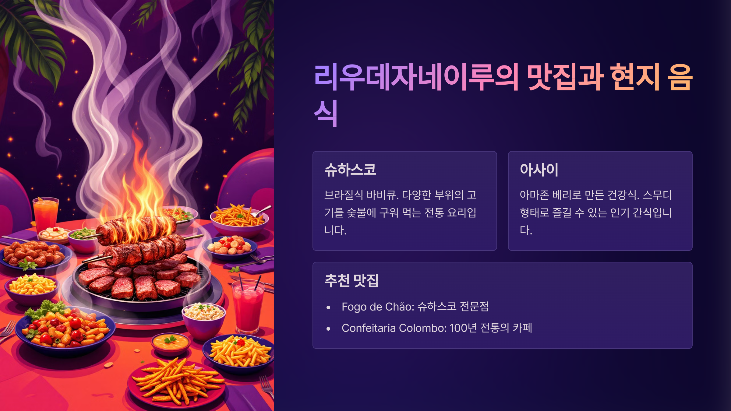 리우데자네이루를 방문하면 꼭 먹어봐야 할 브라질 전통 요리들이 있습니다.