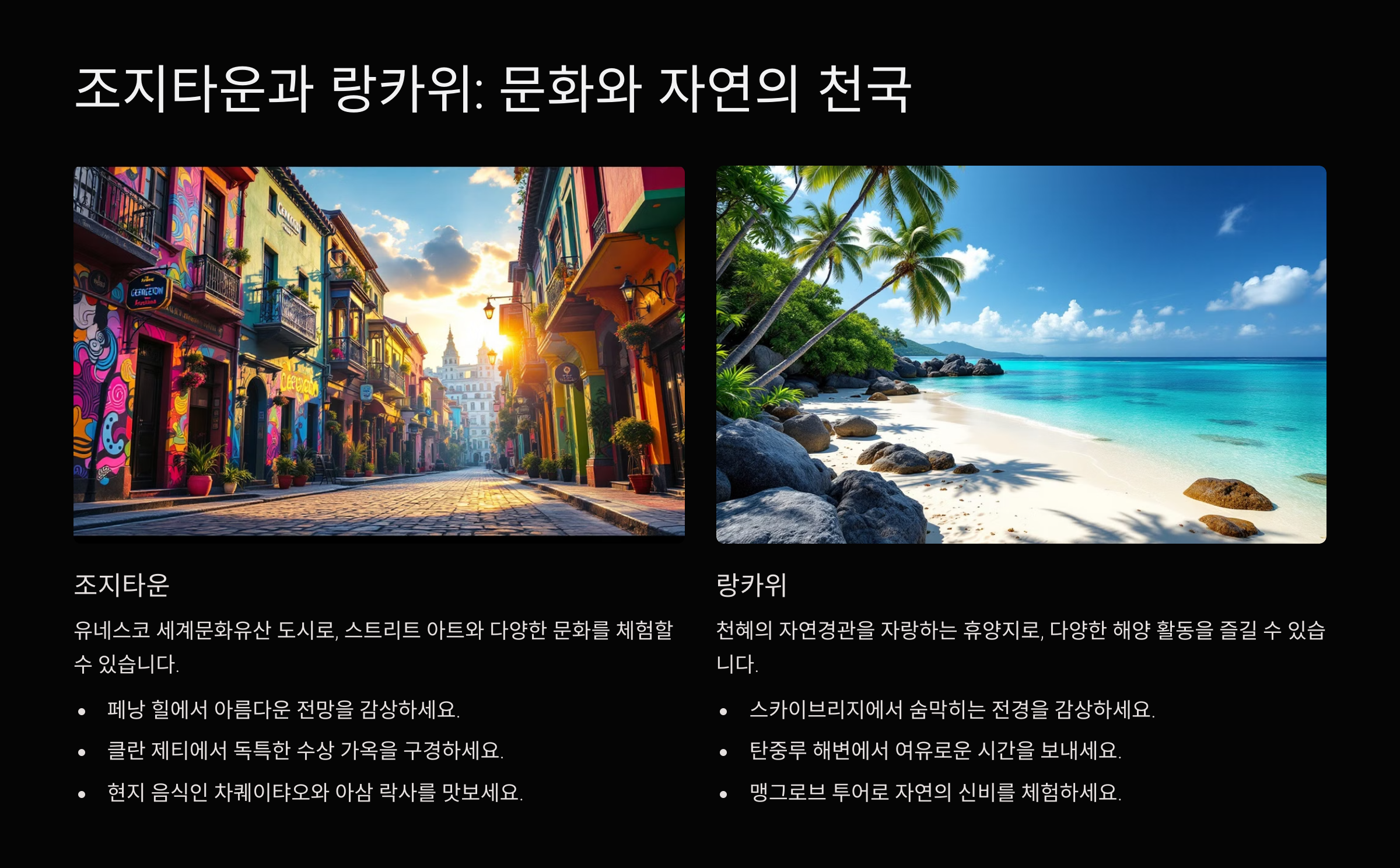 이 글에서는 말레이시아를 처음 방문하는 여행자들도 편리하게 여행을 즐길 수 있도록 도시 별 추천 여행 코스, 먹거리, 교통 정보, 숙소 선택 팁 등 필요한 모든 정보를 제공합니다. 특히, 말레이시아는 다양한 문화가 공존하는 만큼 지역별 특성을 이해하고 여행 계획을 세운다면 더욱 풍성한 여행이 될 것입니다.