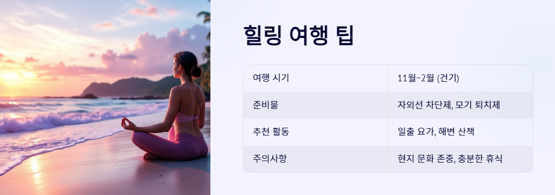 또한, 국립공원에서의 트레킹이나 휴양지의 스파 체험은 몸과 마음을 정화하는 데 도움을 줍니다. 힐링을 위한 여행 계획이 궁금하다면 아래에서 더 자세히 확인해보세요.