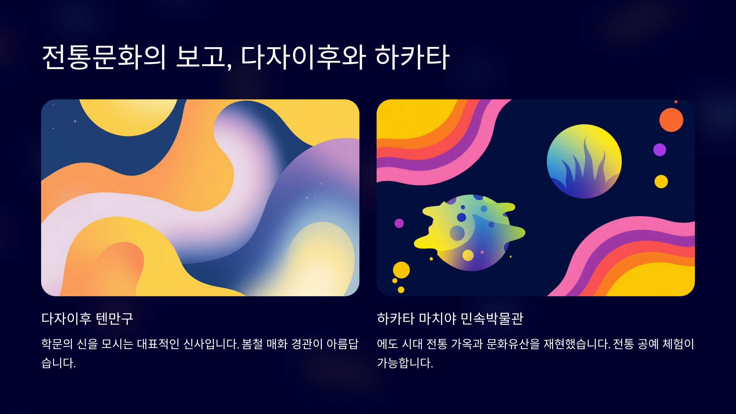 여행 준비를 할 때, 일정에 맞는 명소를 선정하면 더욱 알찬 여행이 될 것입니다. 아래에서 소개할 장소들은 후쿠오카의 대표적인 관광지로, 각각 고유의 매력과 이야기를 담고 있습니다. 이번 포스팅에서는 후쿠오카의 대표적인 명소와 함께 숨은 보석 같은 여행지를 모두 소개하니, 끝까지 읽어보세요!