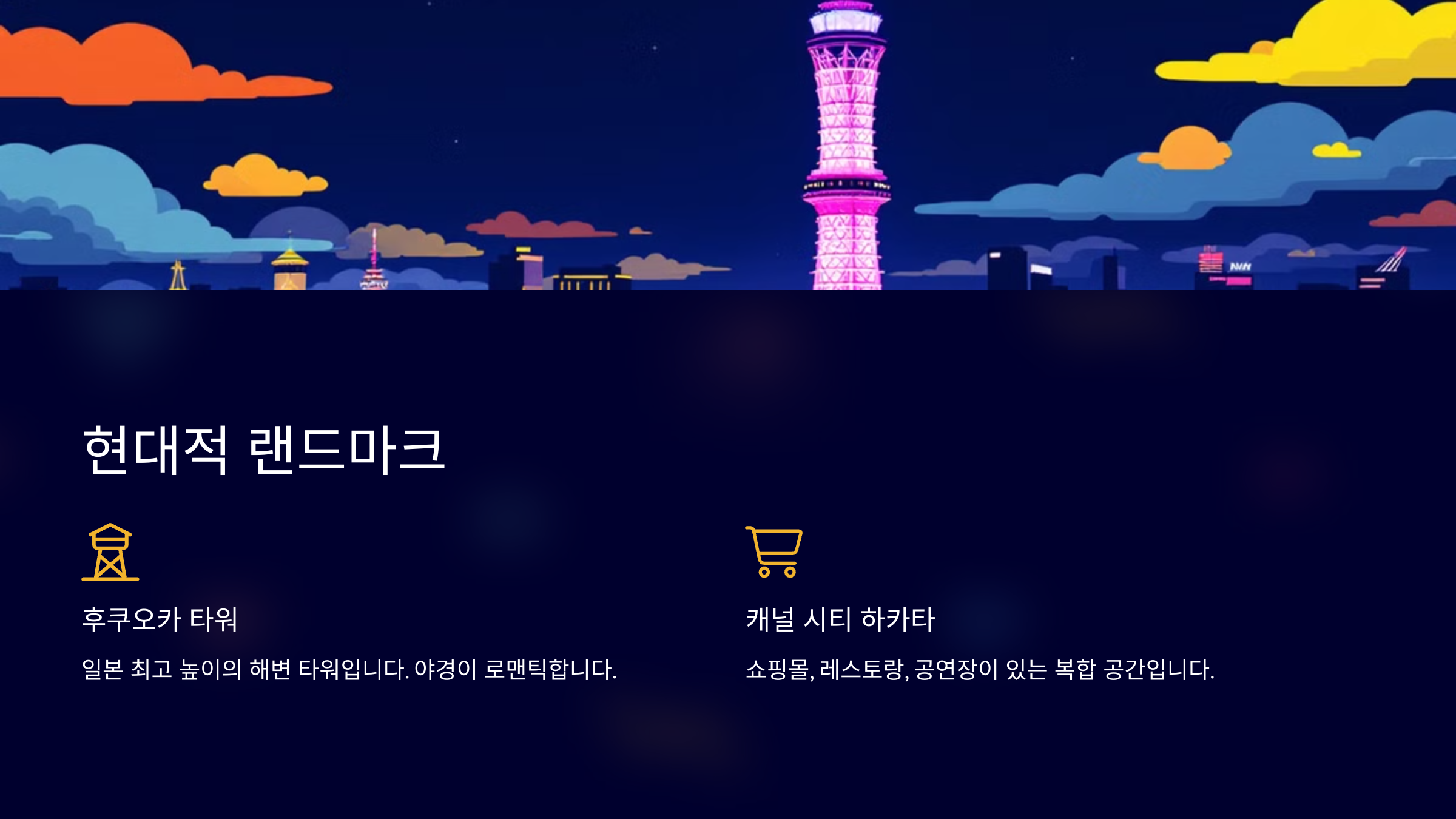 후쿠오카는 일본의 주요 항구 도시이자 큐슈 지역의 관문으로 불리는 도시입니다. 역사와 현대 문화를 동시에 품은 후쿠오카는 관광, 쇼핑, 미식, 자연, 문화 체험 등 다양한 매력을 지니고 있어