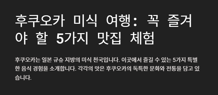 후쿠오카는 일본의 남서부에 위치한 규슈 지방의 중심 도시로, 전통과 현대가 조화를 이루는 매력적인 여행지입니다. 도시의 활기와 아름다운 자연, 맛있는 음식, 풍부한 문화유산이 어우러져