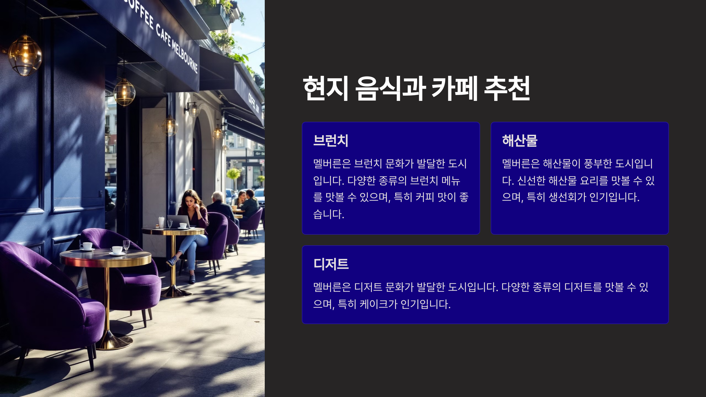 Q5. 멜버른의 유명한 커피 문화는 어디서 경험할 수 있나요?