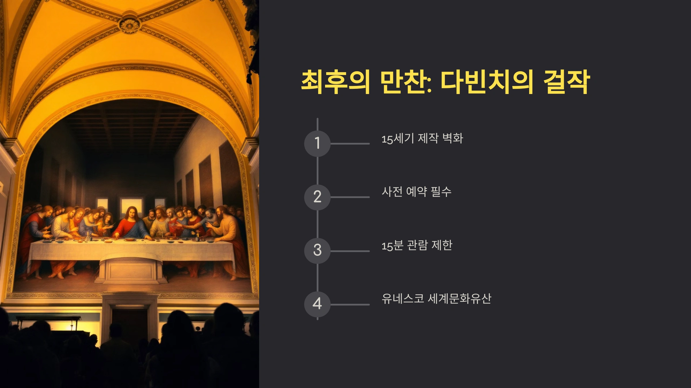 이 작품은 15세기에 제작된 벽화로, 세계적으로 가장 유명한 미술품 중 하나입니다.