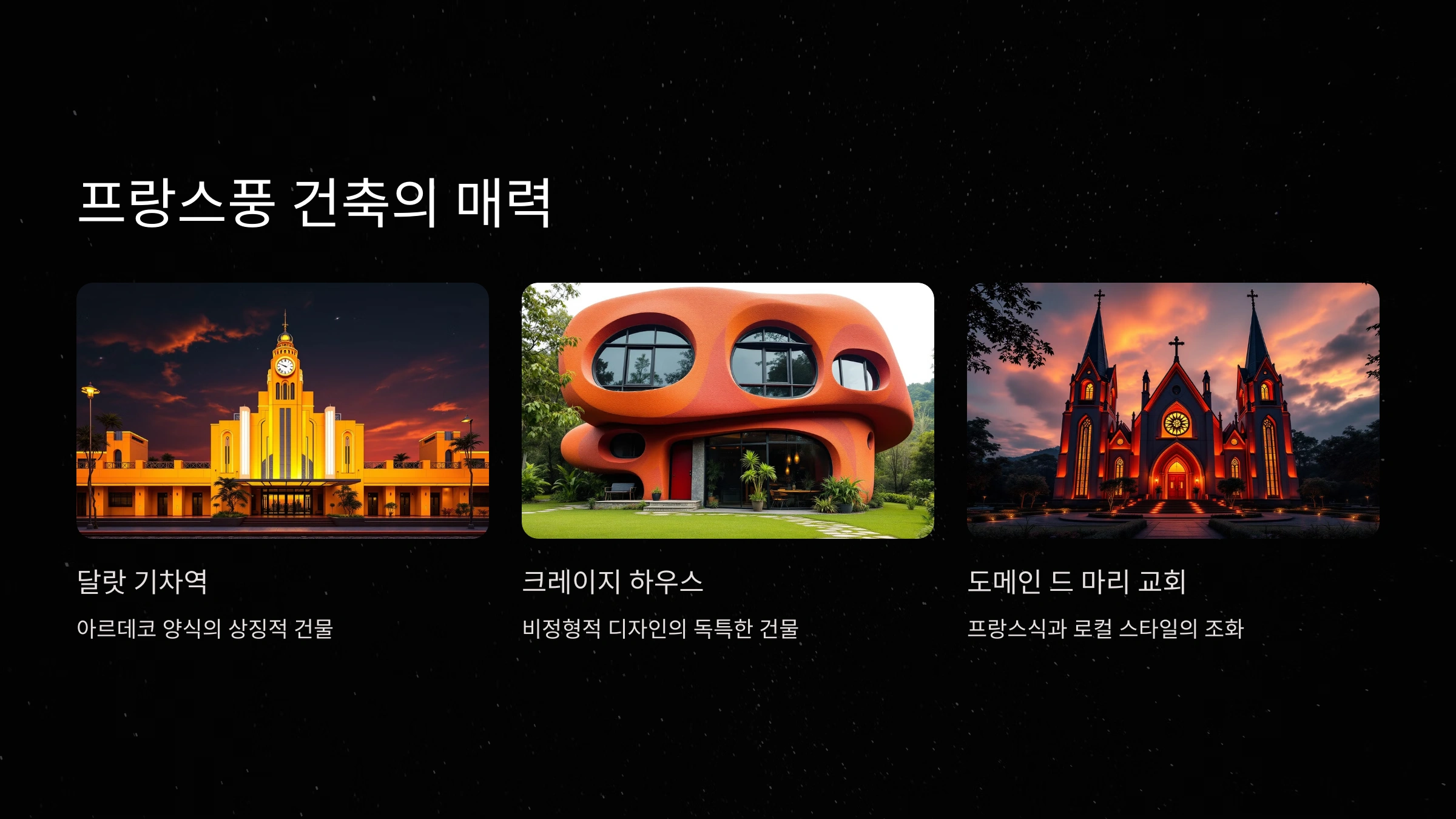 달랏의 프랑스풍 건축은 이 도시를 특별하게 만들어주는 중요한 요소예요. 대표적인 건축물로는 달랏 기차역이 있어요. 이 기차역은 프랑스 식민지 시절 세워졌으며, 독특한 아르데코 양식이 반영된 아름다운 디자인으로 유명해요.