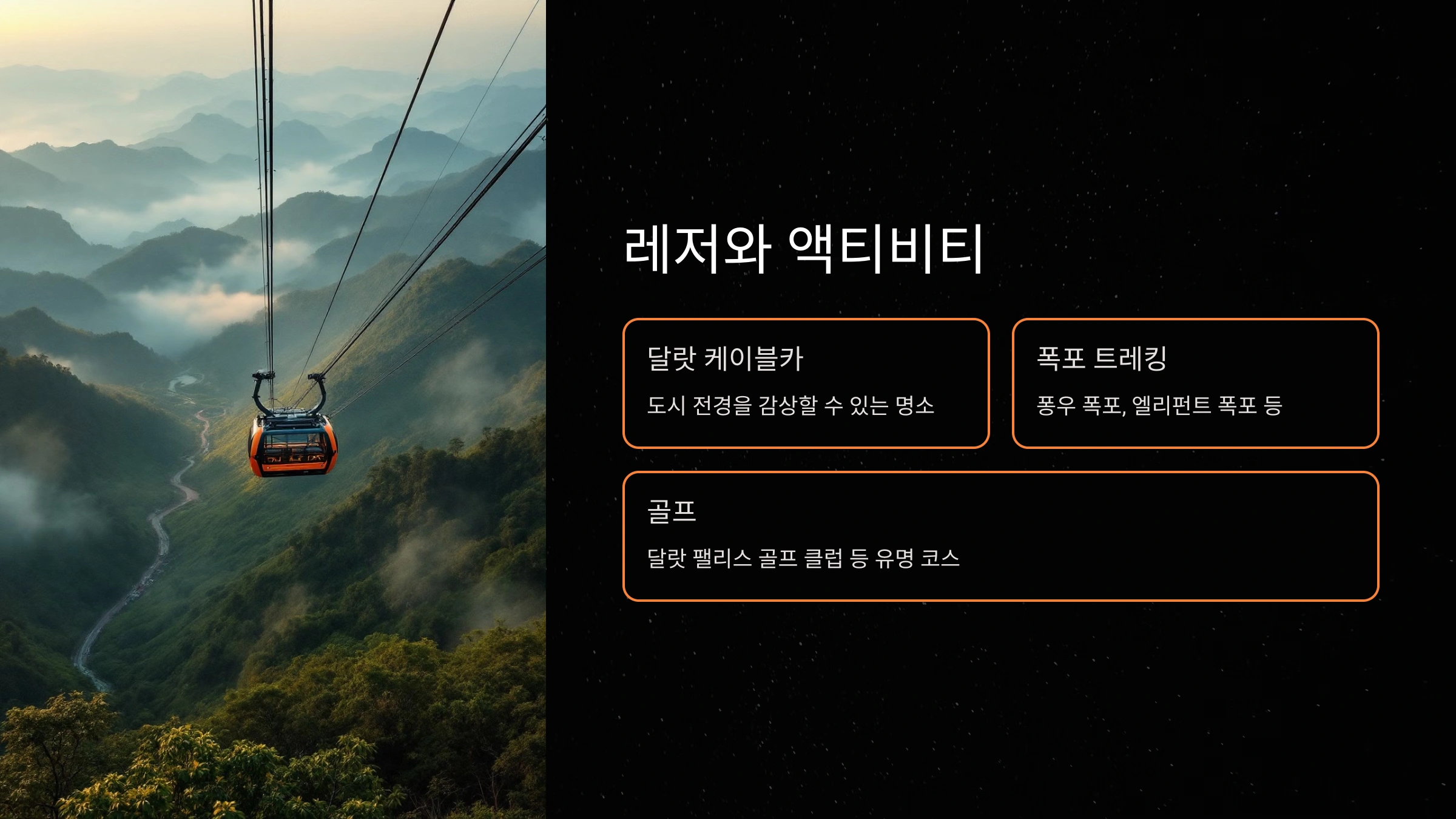 달랏은 레저와 액티비티가 풍부한 도시로, 자연을 사랑하는 사람들에게 완벽한 여행지예요. 특히 '달랏 케이블카'는 도시의 전경을 한눈에 내려다볼 수 있는 멋진 경험을 선사해요. 이 케이블카를 타고 아름다운 언덕과 숲을 가로지르는 동안, 달랏의 매력을 새롭게 발견하게 될 거예요.