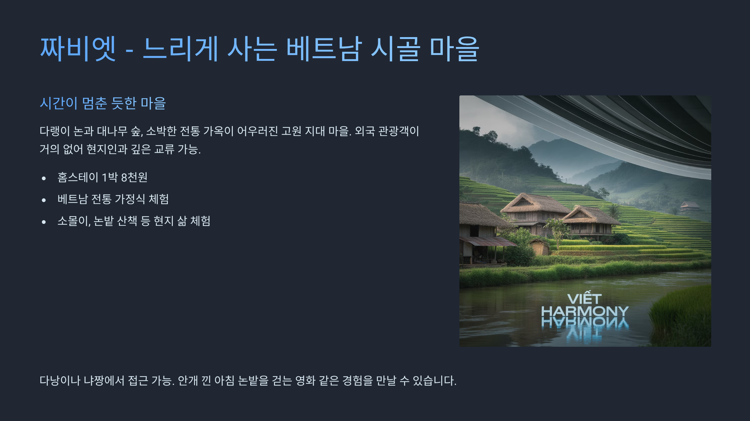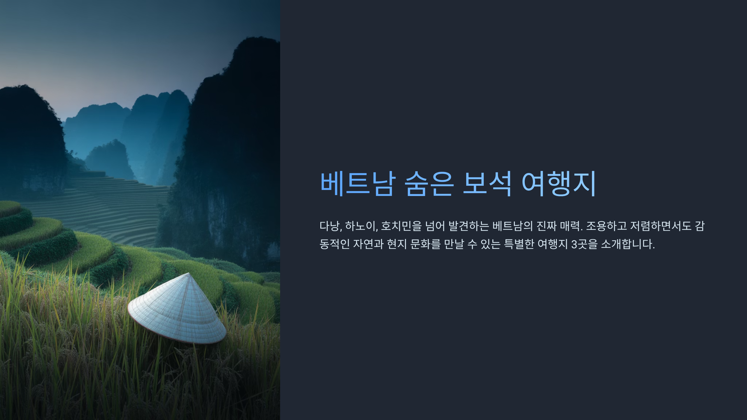 하나하나 천천히 살펴보면, 베트남이 단순히 유명한 도시 말고도 얼마나 깊고 풍부한 여행 경험을 줄 수 있는 나라인지 알게 될 거예요!