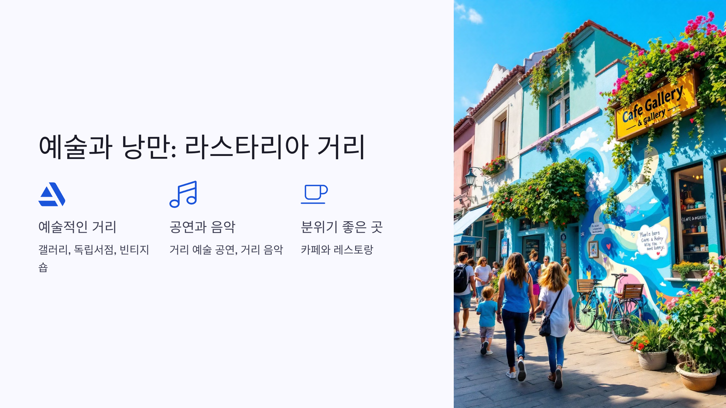 • **벽화 거리(Mural Street)**에서 인스타그램 감성 사진 촬영