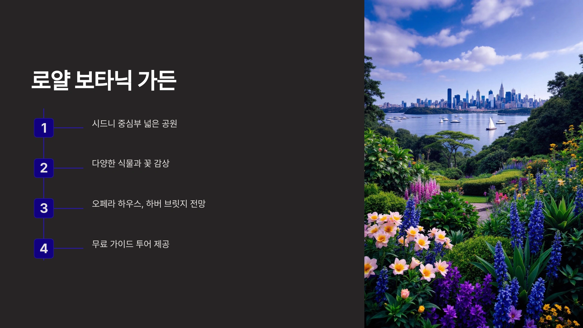 로얄 보타닉 가든은 시드니 중심에 위치한 넓은 공원입니다.