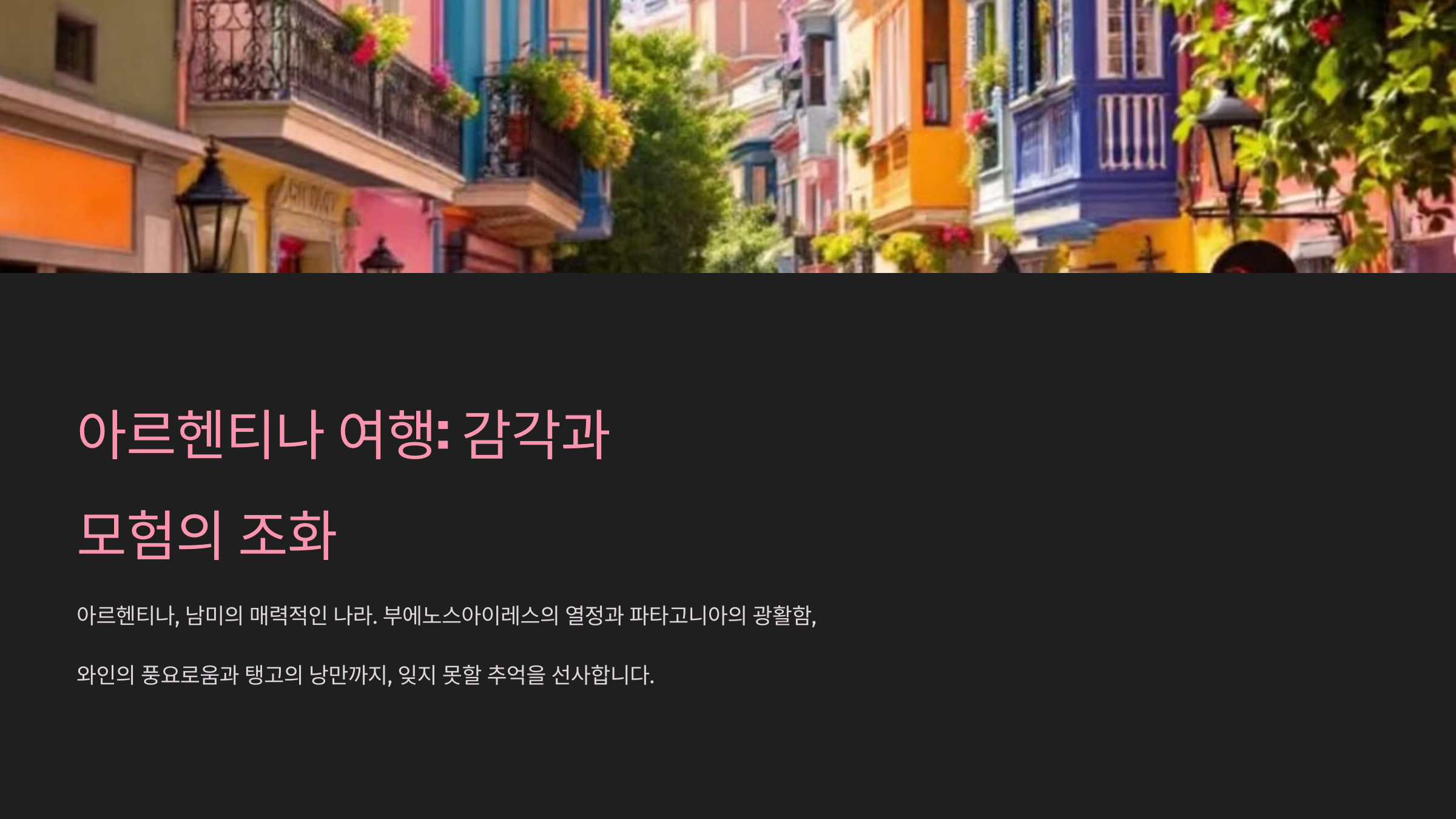 제가 생각했을 때 아르헨티나는 다양한 관광객의 취향을 충족시킬 수 있는 나라예요. 열정적인 탱고 문화, 고급 와인, 숨이 멎을 듯한 파타고니아의 경관까지 모든 것이 준비되어 있어요. 처음 이곳을 방문하는 사람들에게는 무조건 추천하고 싶어요.