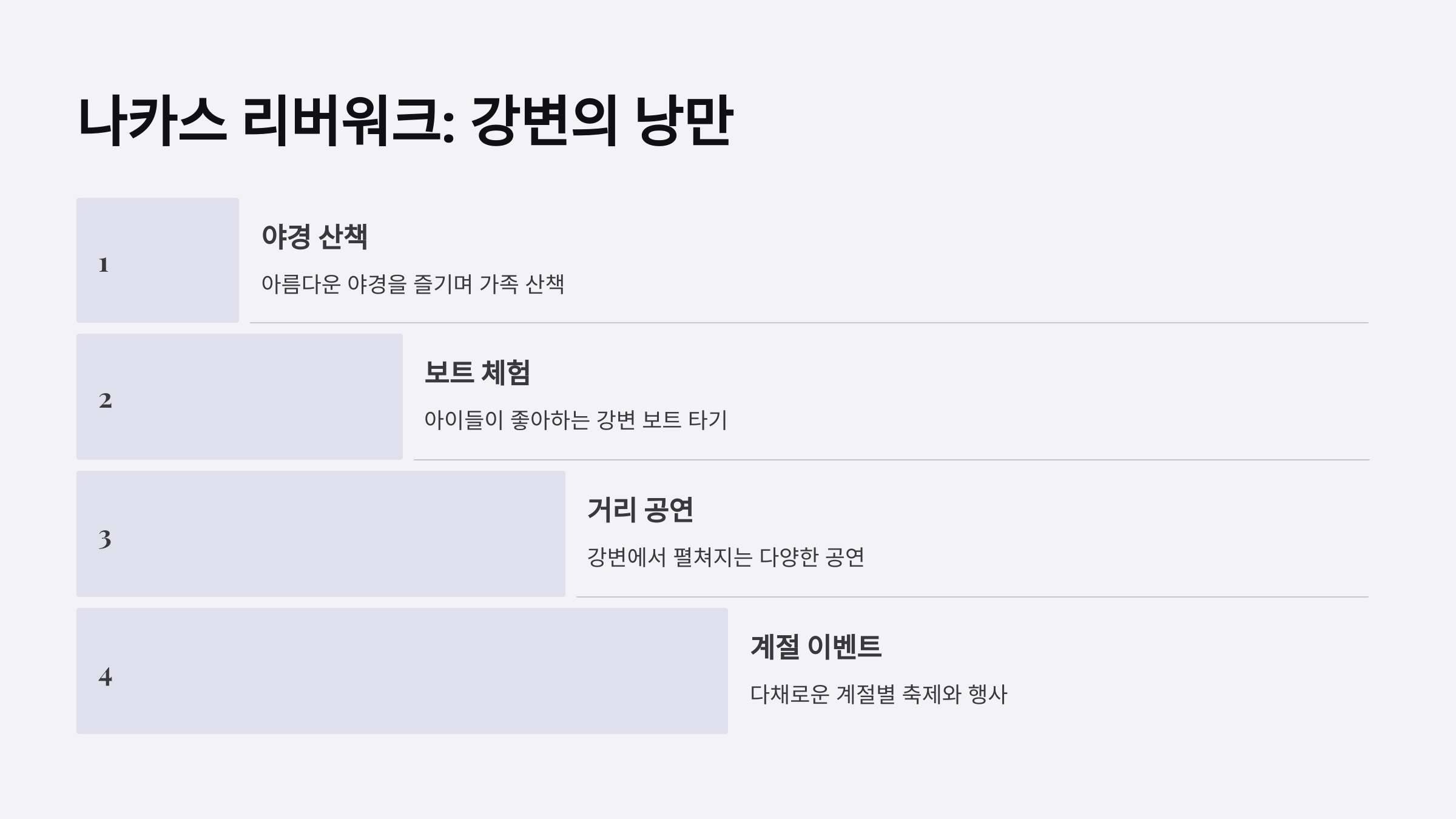 강변에서 펼쳐지는 거리 공연이 가족들에게 특별한 추억을 만들어줍니다.