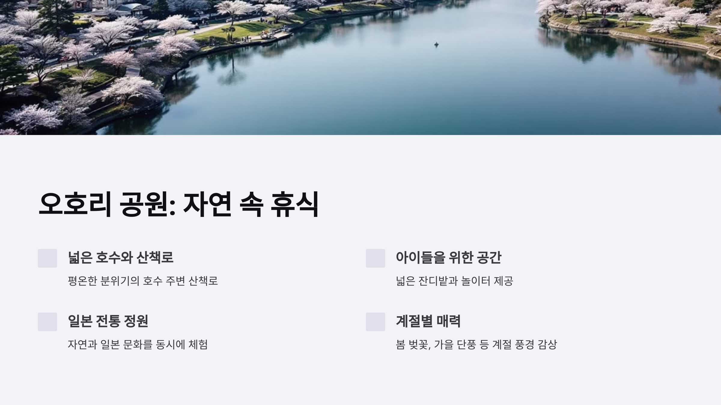 시즌별로 꽃 축제가 열리며, 아름다운 풍경이 가족 사진을 찍기에 제격입니다.