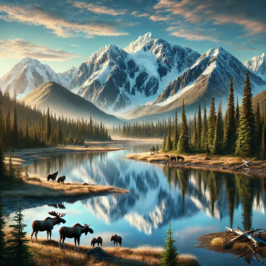 디날리 국립공원: 북미 최고봉인디날리 산이 있는 곳으로, 야생동물과 웅장한 자연을 감상할 수 있습니다.