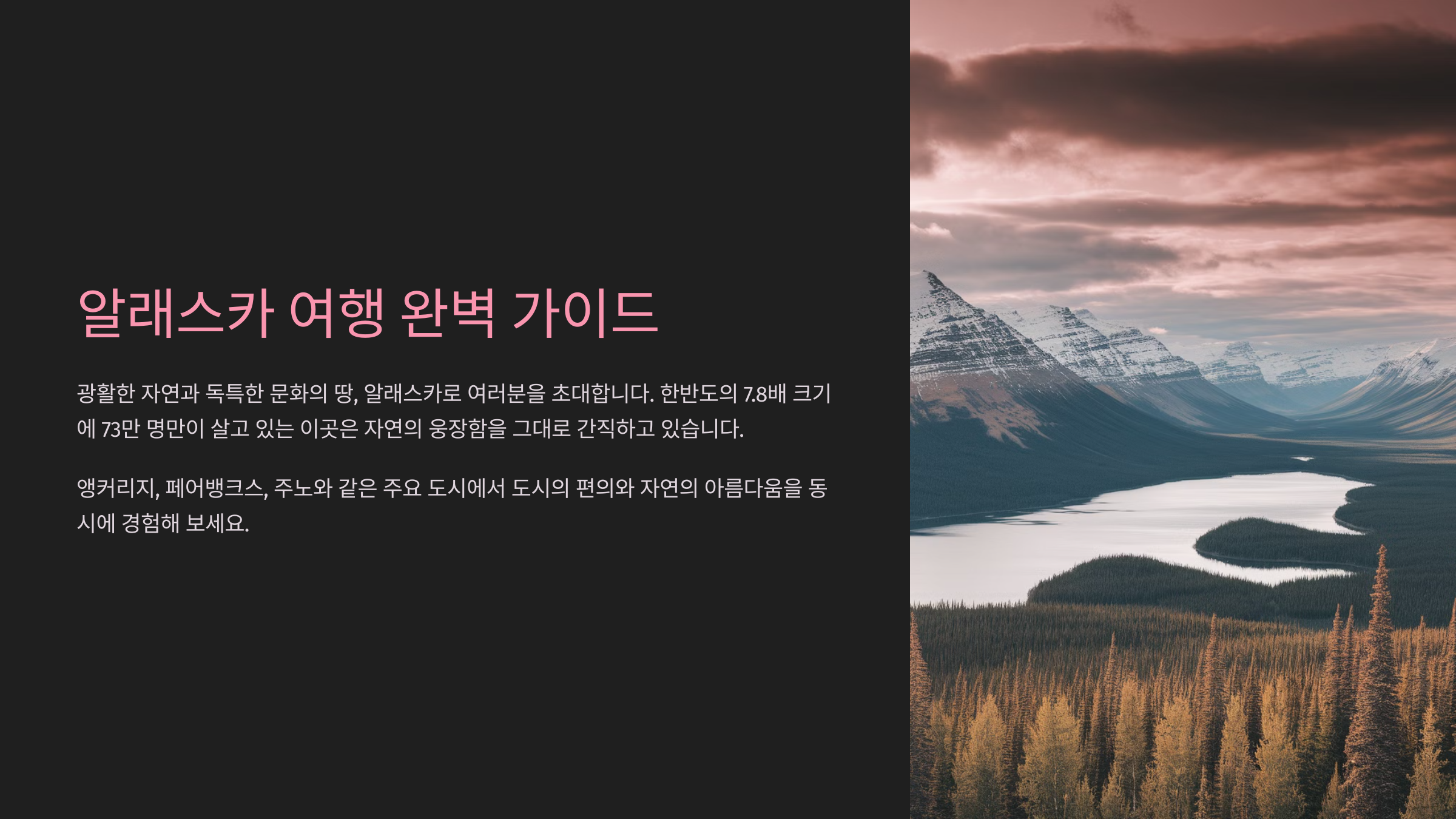 앵커리지: 알라스카 최대 도시로, 다양한 관광 명소와 맛집이 많습니다.