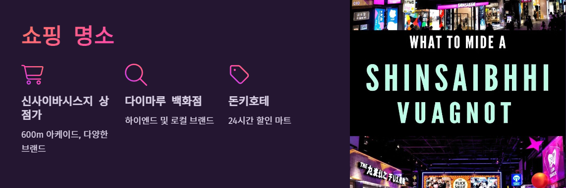 이곳에서는 최신 트렌드를 반영한 패션 아이템을 찾을 수 있을 뿐만 아니라, 일본의 독특한 화장품과 잡화 브랜드도 쉽게 만날 수 있습니다. 또한, 쇼핑뿐만 아니라 맛집도 많아 하루 종일 즐기기에 부족함이 없습니다.