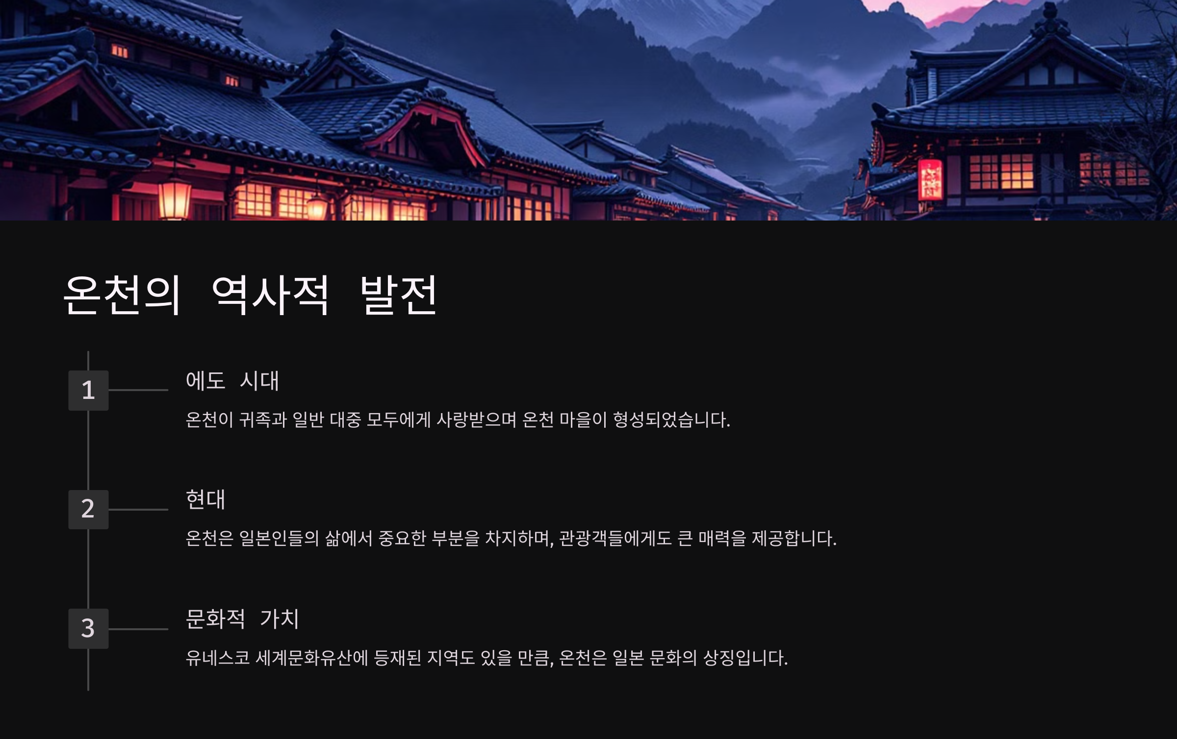 현대에도 온천은 일본인들의 삶에서 중요한 부분을 차지하며, 관광객들에게도 큰 매력을 제공합니다.
