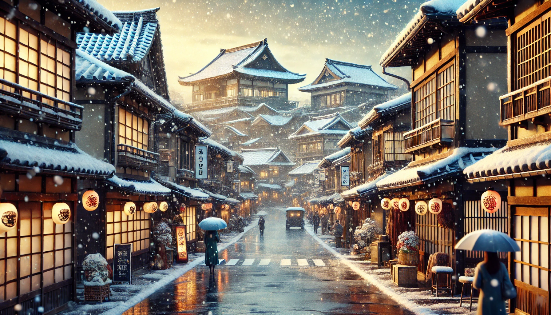 눈으로 덮인 전통 가옥과 산 속의 고요한 분위기는 도심에서 느낄 수 없는 특별한 매력을 제공합니다.
