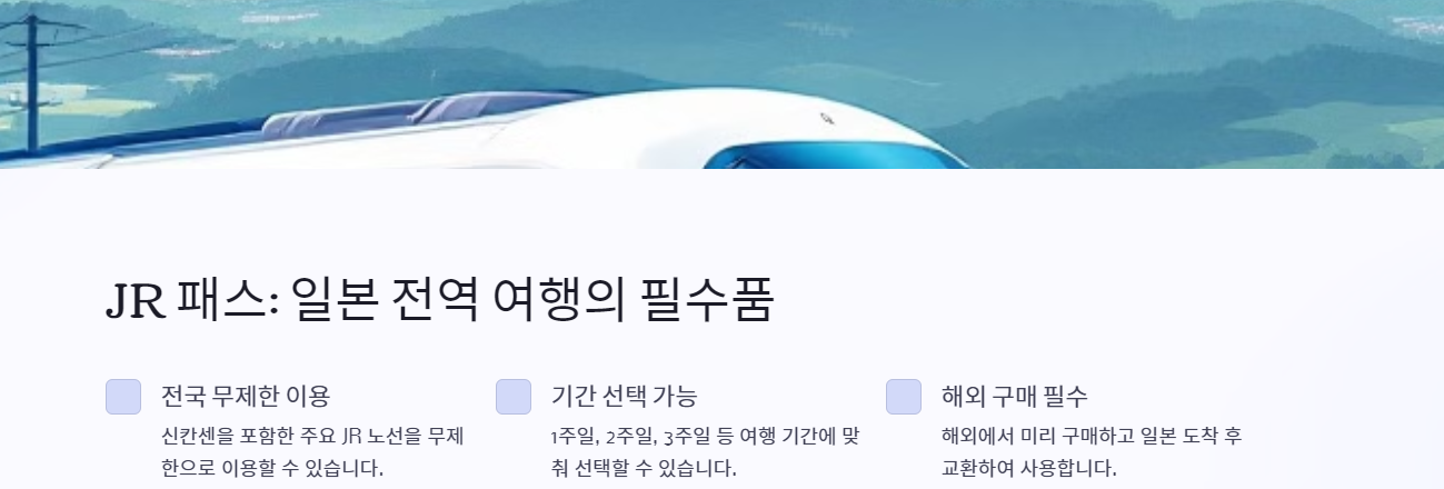JR 패스는 일본 전역에서 사용 가능한 철도 패스로, 여행자 전용으로 판매됩니다.