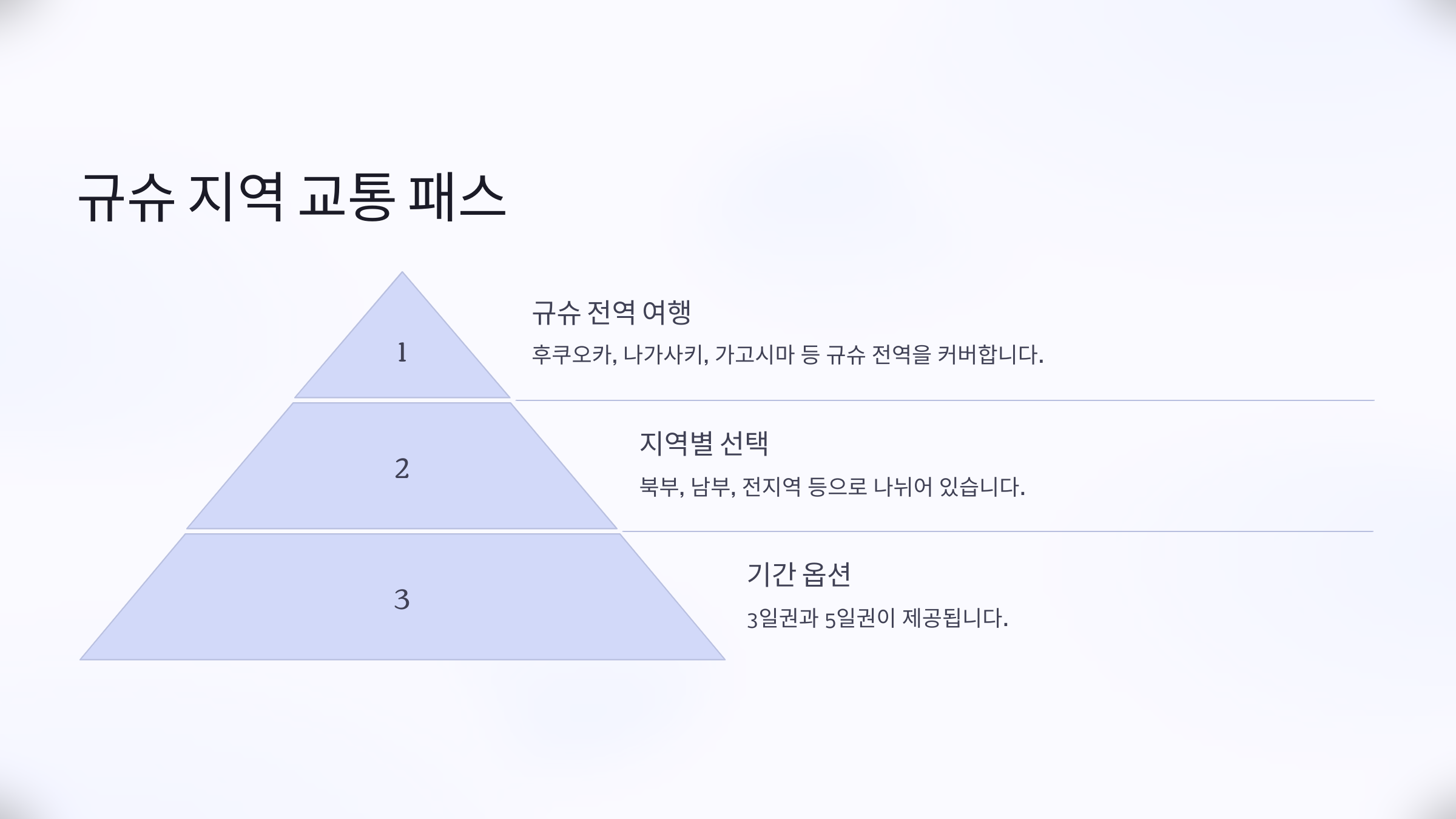 반면, 지역 패스는 세부적으로 설계된 옵션이 많아 유연합니다.