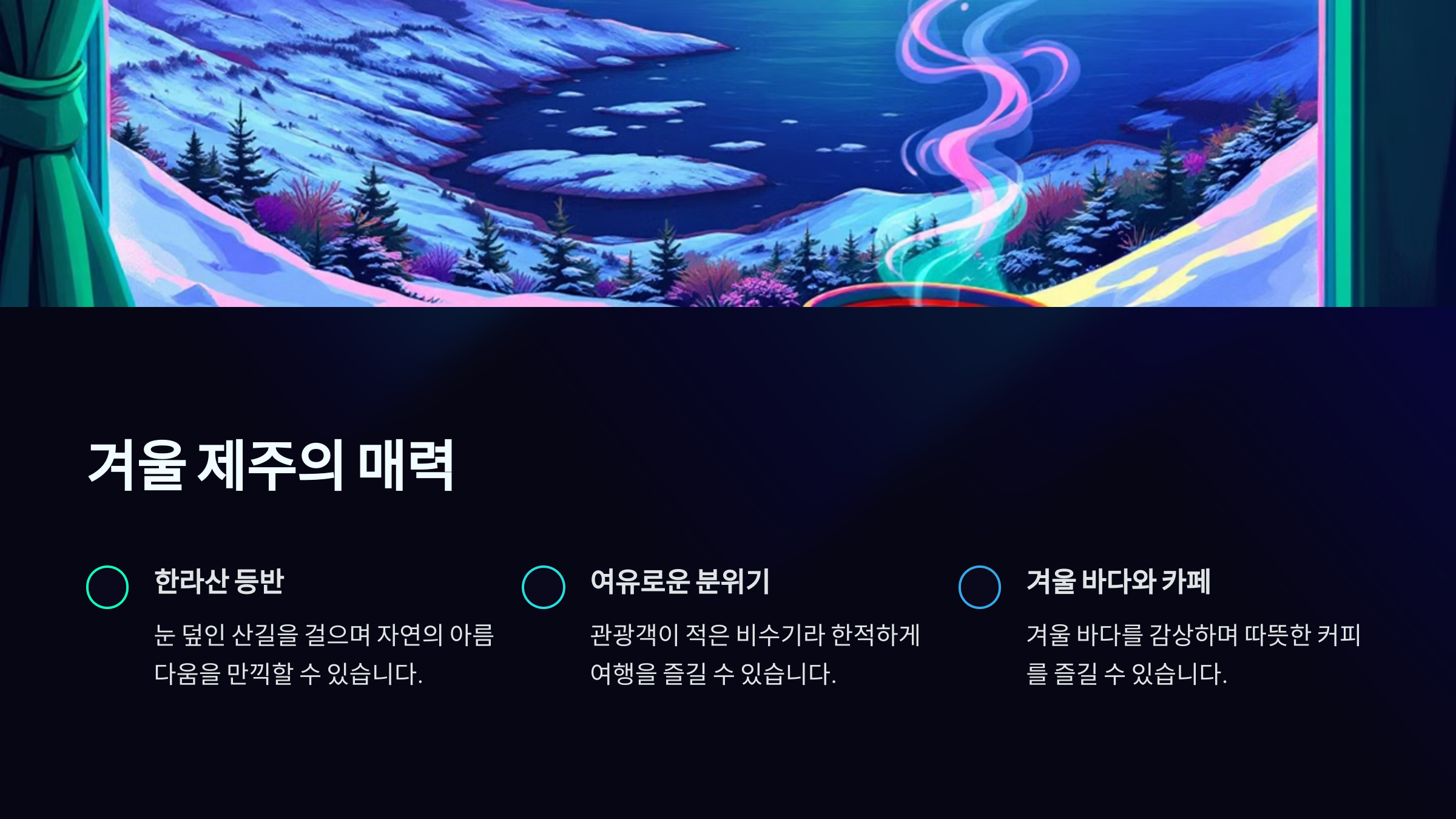 맑고 시원한 공기 속에서 진정한 힐링을 경험할 수 있는 제주 겨울은 놓치기 아쉬운 여행 시기입니다.