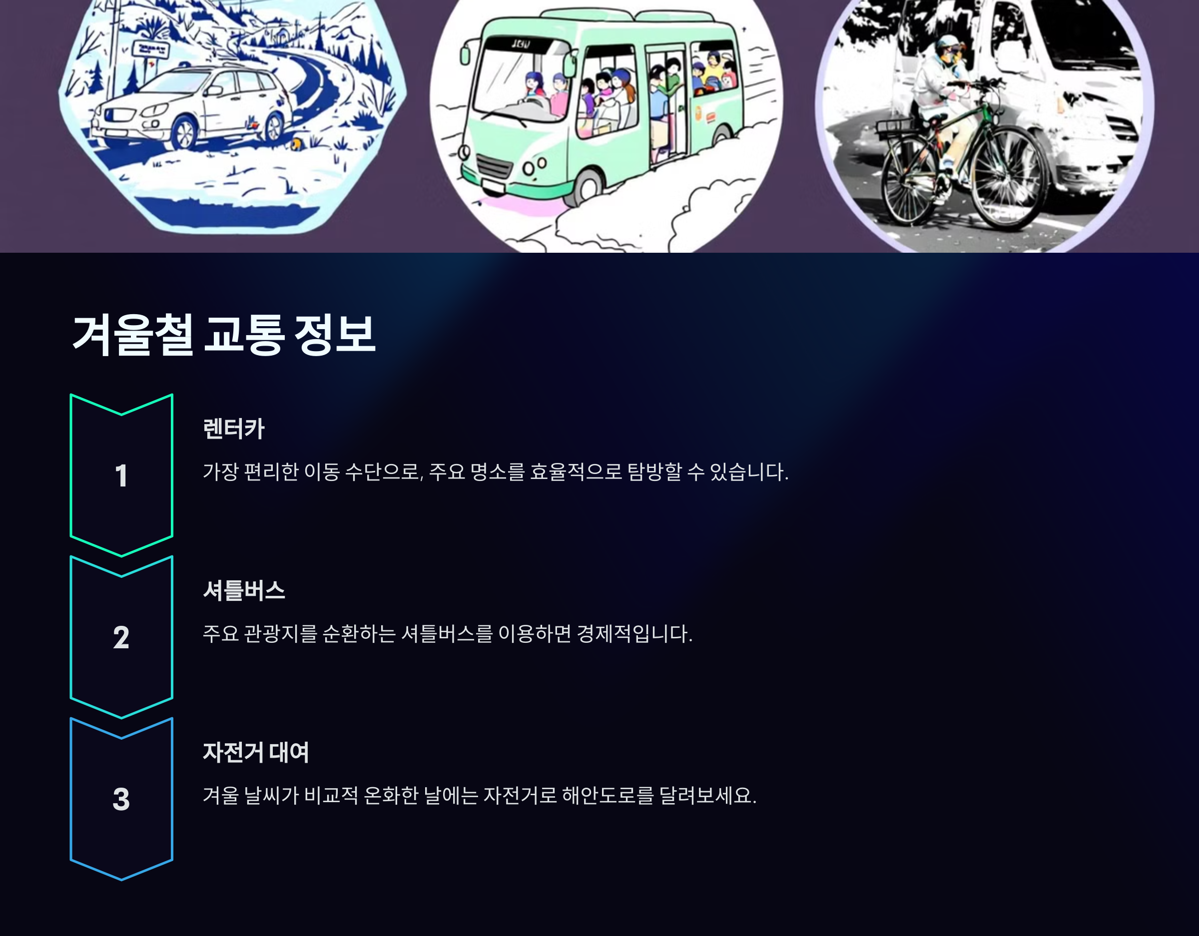 제주의 겨울철 교통 정보는 여행 계획을 세우는 데 중요한 요소입니다.