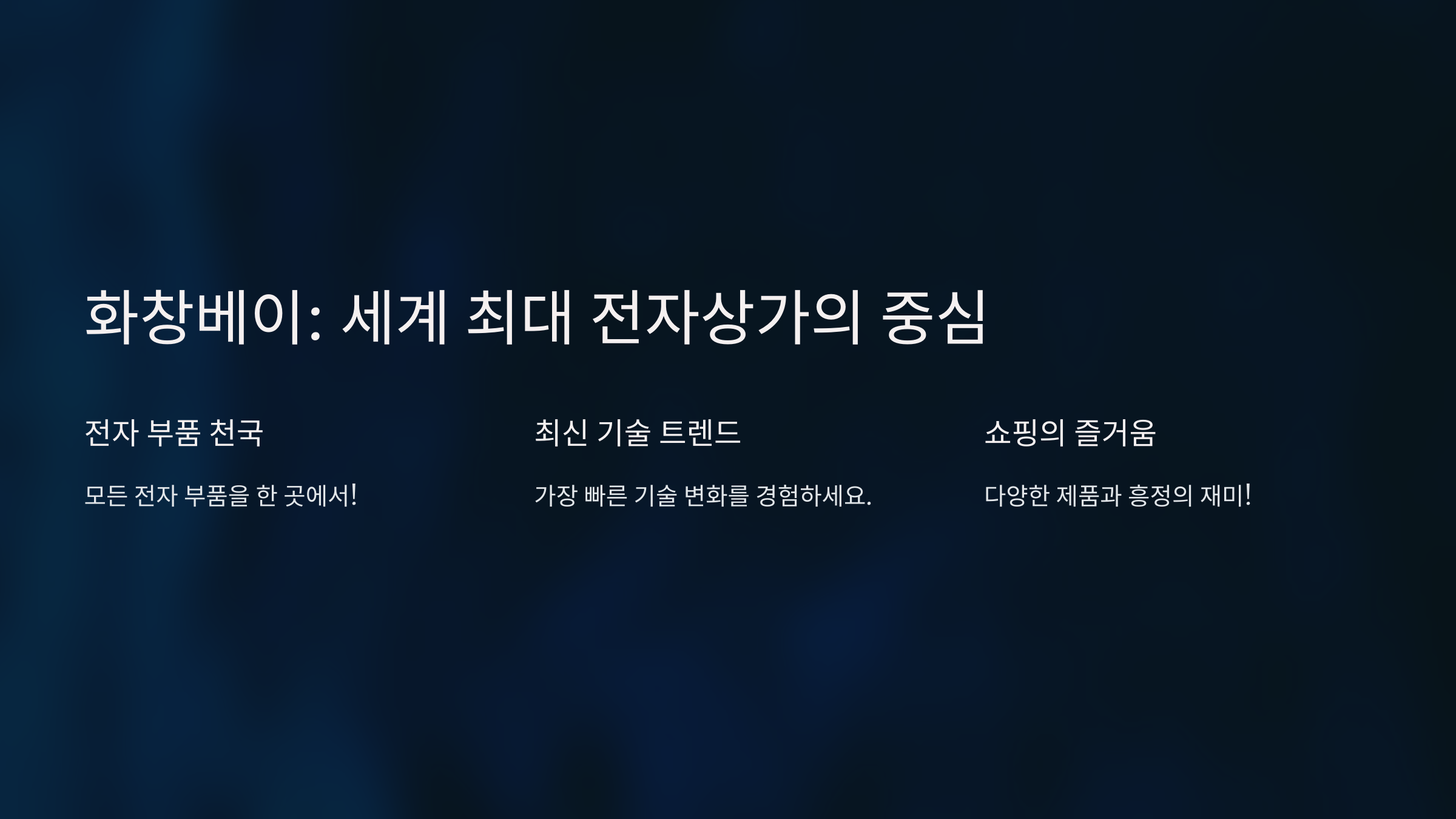 화창베이는 전 세계에서 가장 큰 전자제품 시장 중 하나로, IT 마니아들에게는 천국 같은 곳이에요. 스마트폰, 컴퓨터 부품, 드론, 로봇 등 다양한 전자기기를 저렴한 가격에 구할 수 있죠.