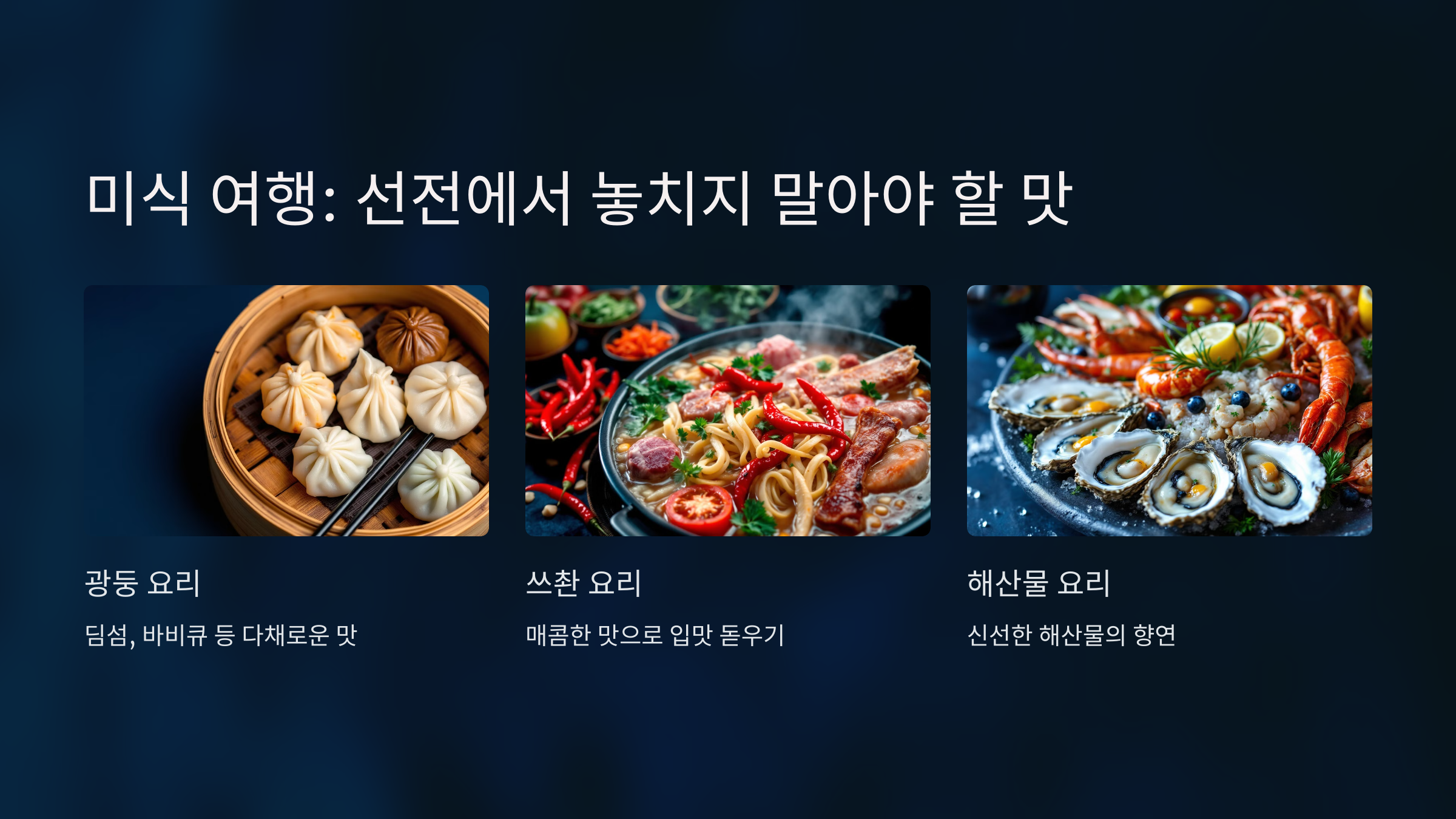 해변과 산에서 자연을 만끽한 후, 선전의 맛있는 음식을 즐겨야겠죠? 🍽️ 이제 미식 탐방을 떠나볼까요?