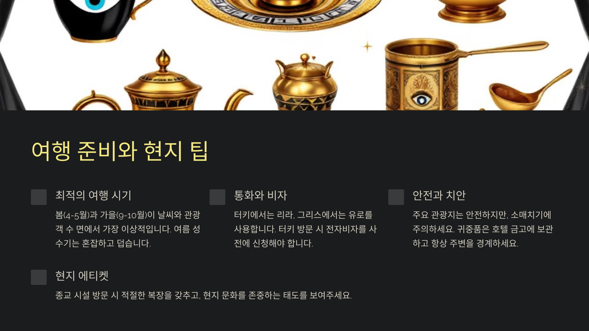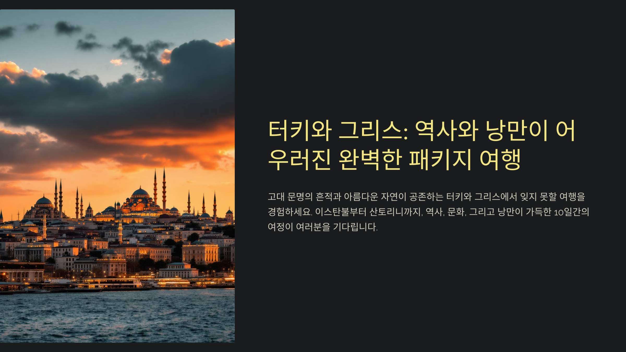 터키와 그리스는 지중해의 보석 같은 나라들로, 이곳을 여행하면 역사가 살아 숨 쉬는 고대 유적지부터 빛나는 에게해의 푸른 바다까지 다채로운 경험을 할 수 있습니다.