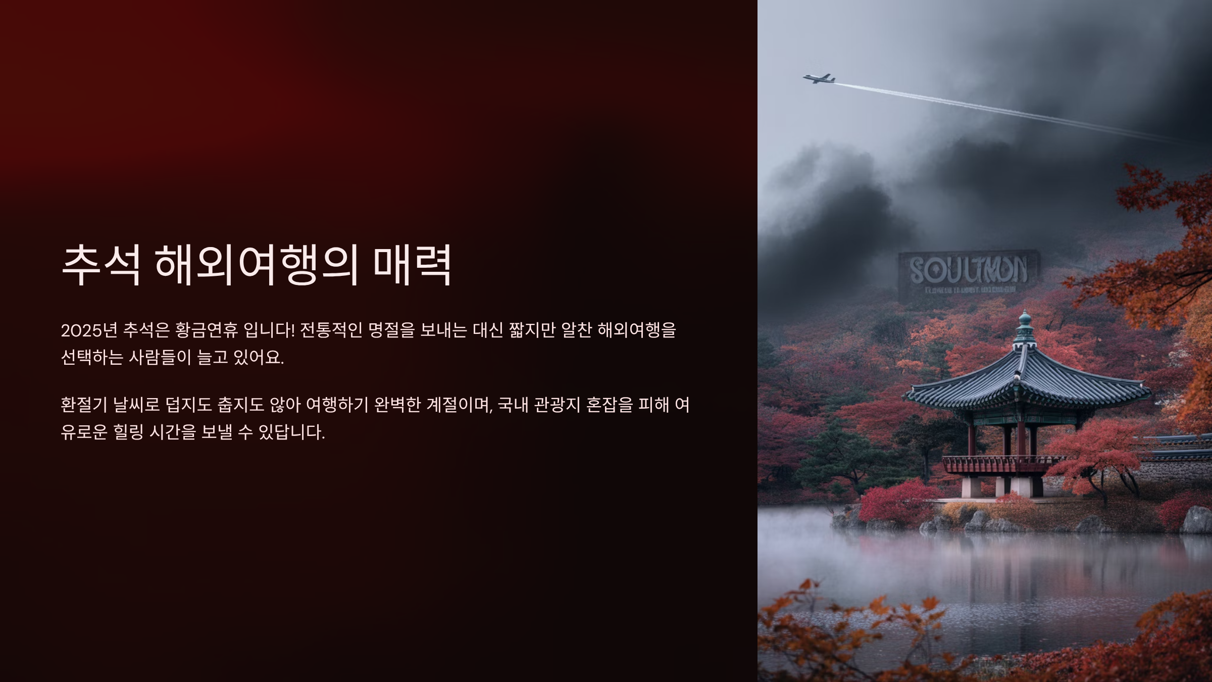 그럼 지금부터 본격적으로 추석 해외여행 추천지를 하나씩 만나볼까요?