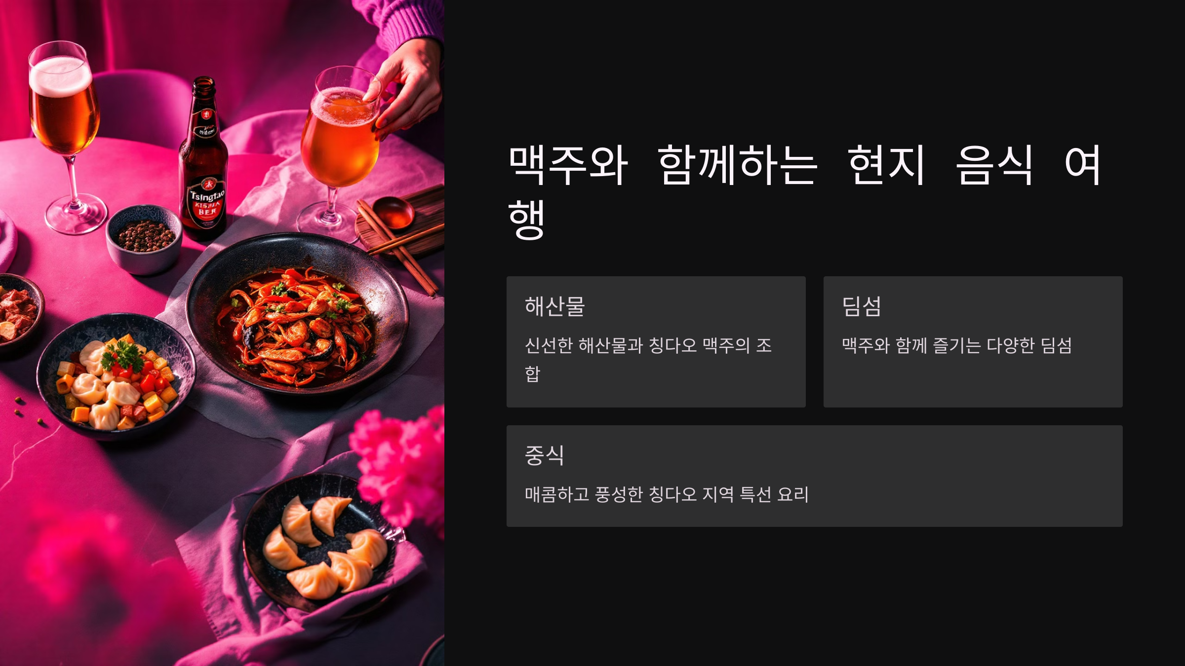 칭다오 맥주와 어울리는 현지 음식을 맛보며, 더 깊은 여행의 즐거움을 느껴보세요! 🍻🍽️