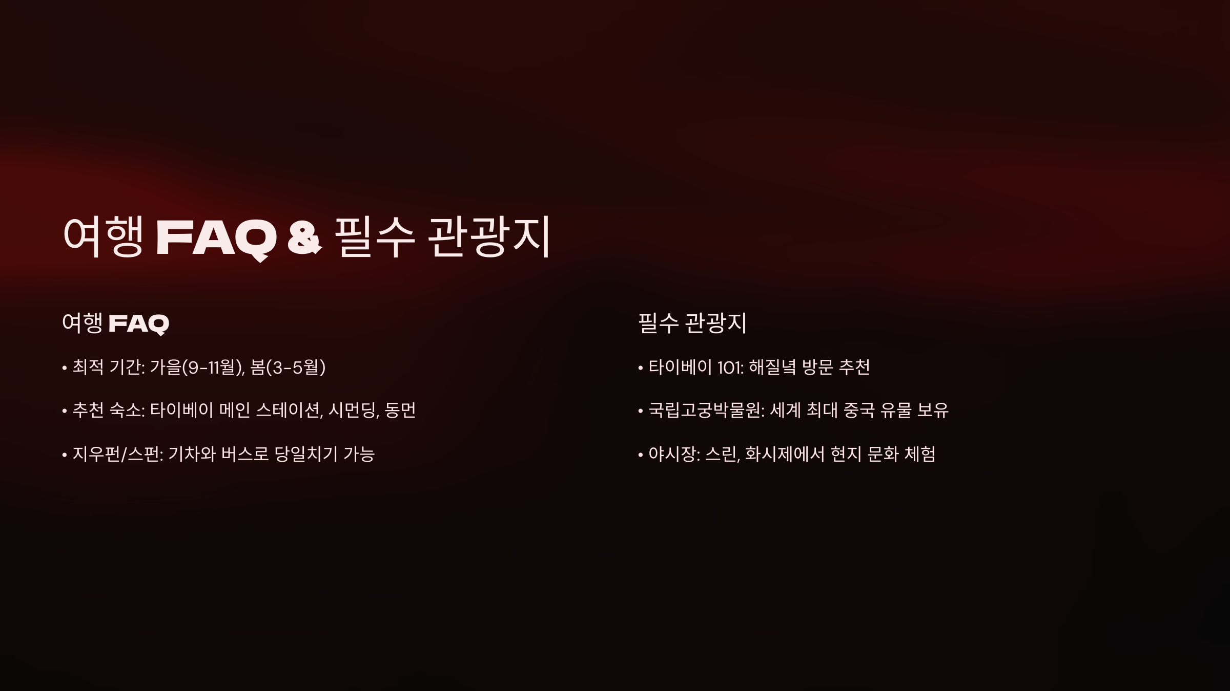 타이베이 여행은 몇 일이 적당한가요?
