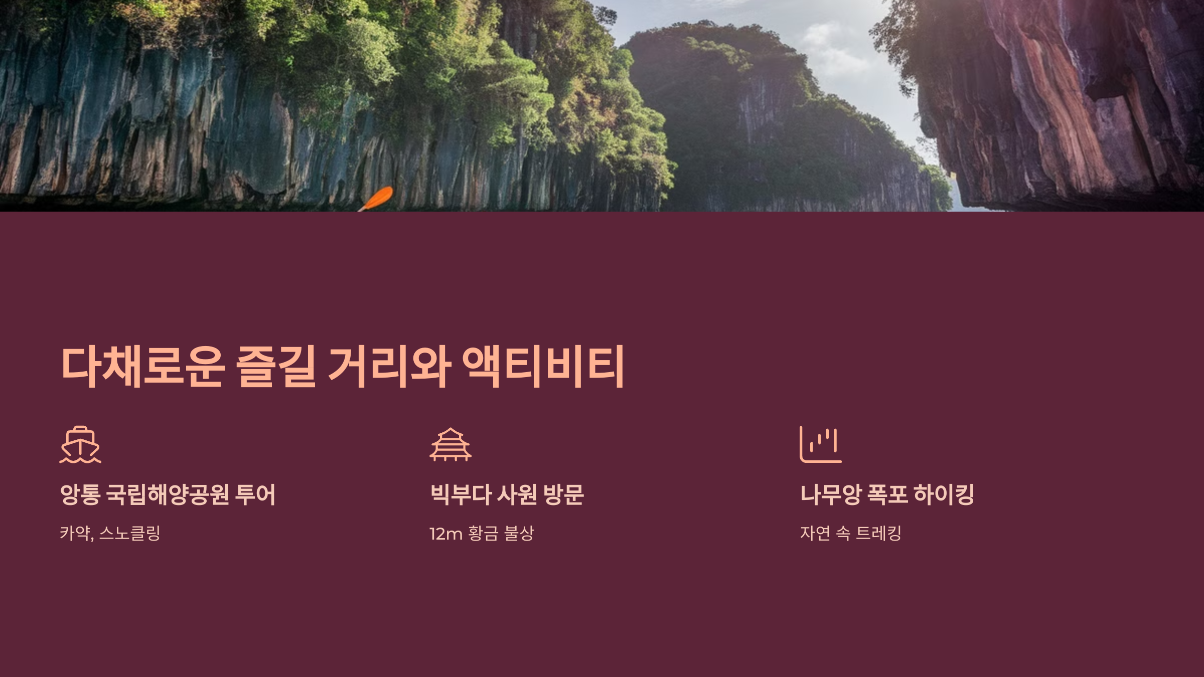 이제 코사무이에서 즐길 수 있는 액티비티를 알아볼까요? 🚤