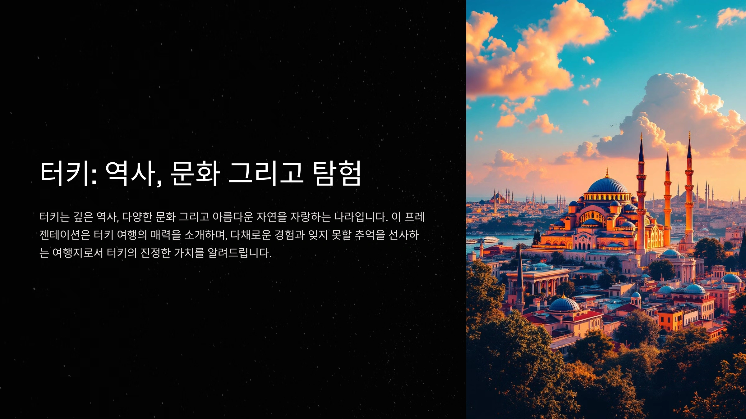 이 모든 요소들이 어우러지면서 터키는 과거와 현재가 공존하는 독특한 매력을 갖춘 나라로 손꼽히고 있어요. 시간이 멈춘 듯한 고대 유적들 속에서도 현대적인 쇼핑몰과 레스토랑을 즐길 수 있는 곳이 바로 터키랍니다.