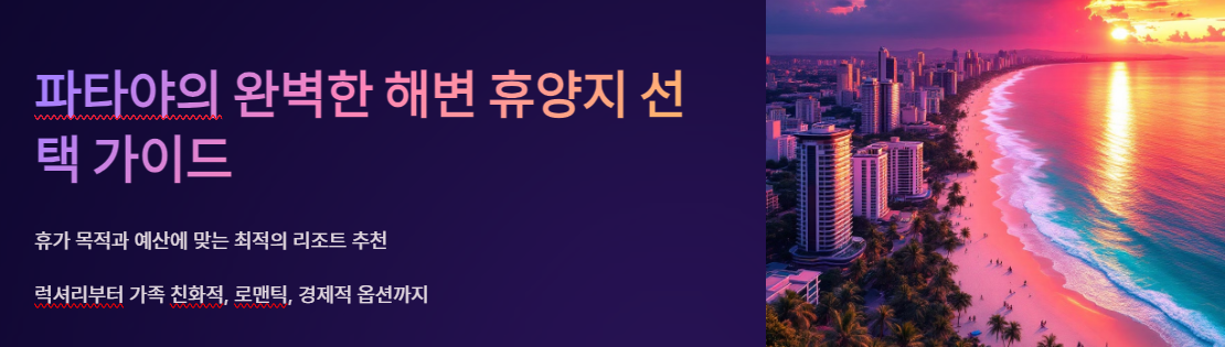 해변 바로 앞에서 일출을 감상하며 여유로운 시간을 보내고, 현대적인 시설과 함께 현지 문화를 느낄 수 있는 리조트를 찾는다면 파타야는 이상적인 선택입니다. 오늘은 파타야에서 반드시 알아야 할 해변 리조트를 소개하고, 선택 시 고려할 점과 주변 즐길 거리까지 자세히 안내하겠습니다.