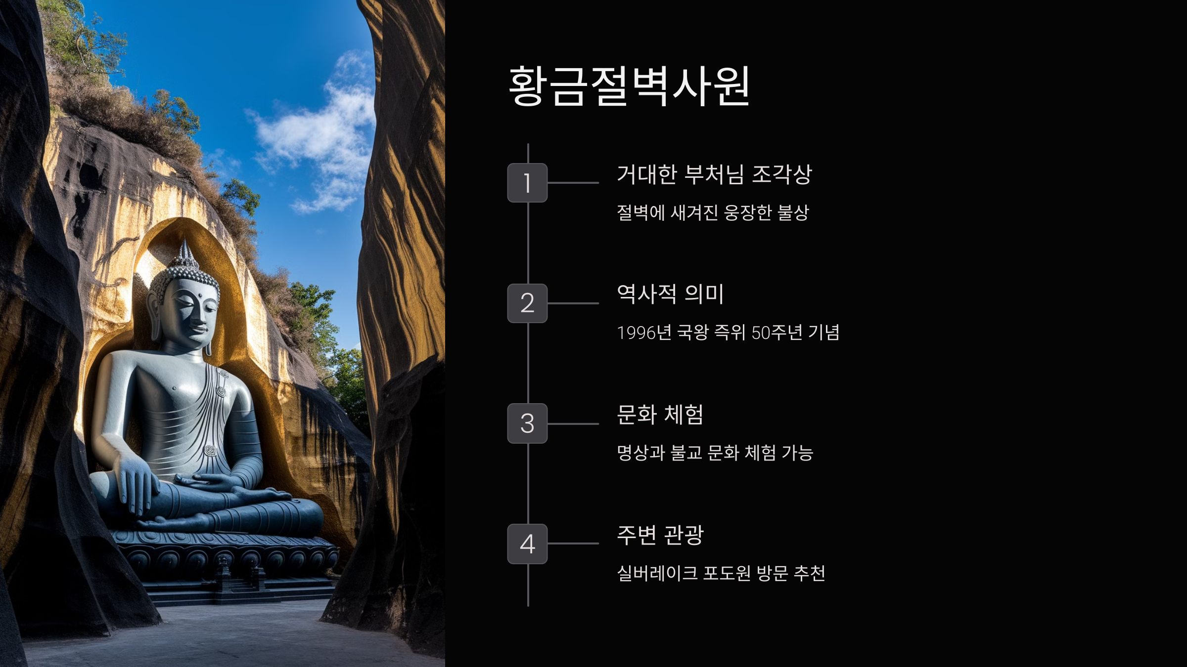 파타야에서 차로 1시간 30분 정도 소요되며, 개인 차량이나 택시를 이용하면 편리합니다.